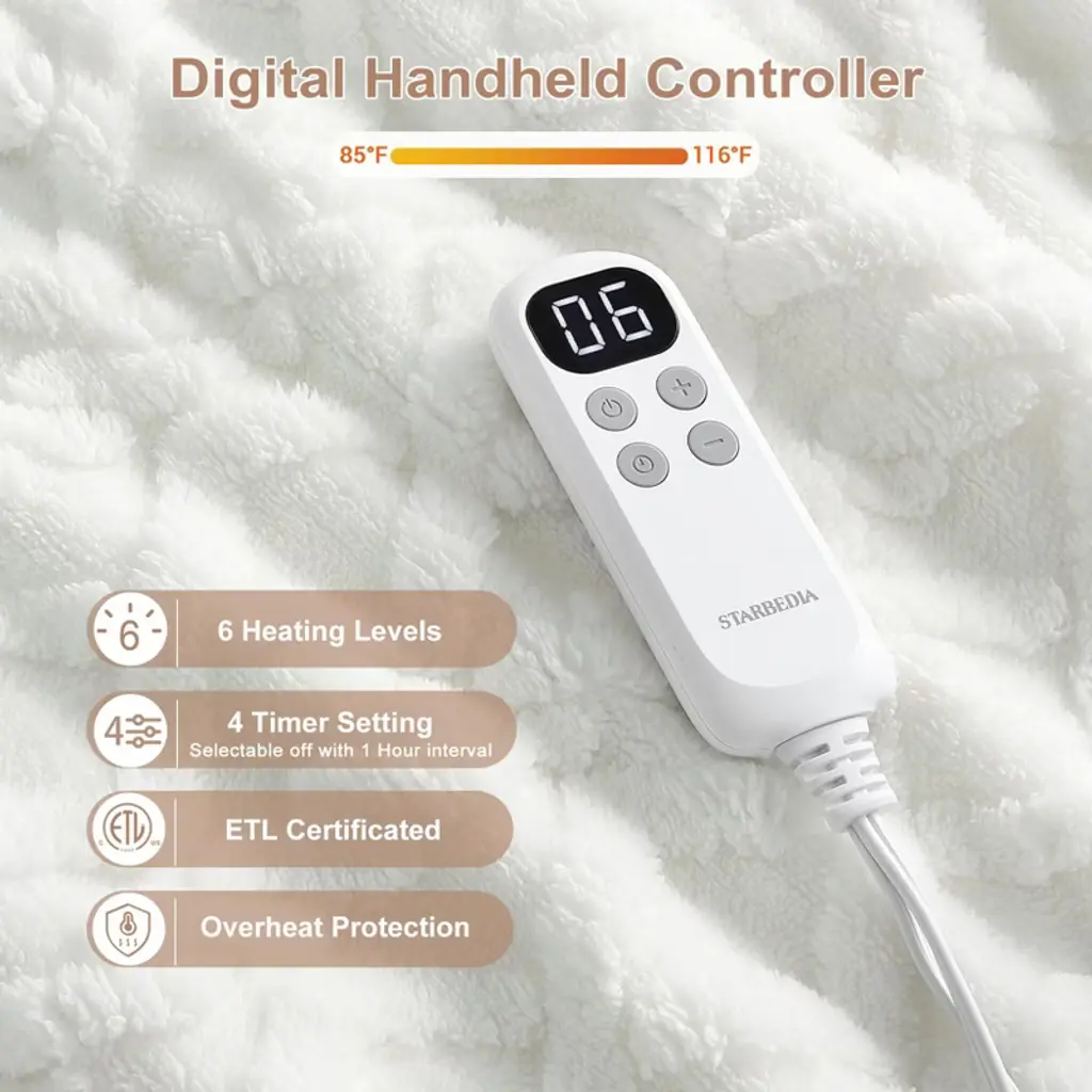 Electric Throw Blanket Heated Blanket, Tufted Heating Blankets With 6 Heating Levels &4 Hours Auto Shutoff, Overheat Protection