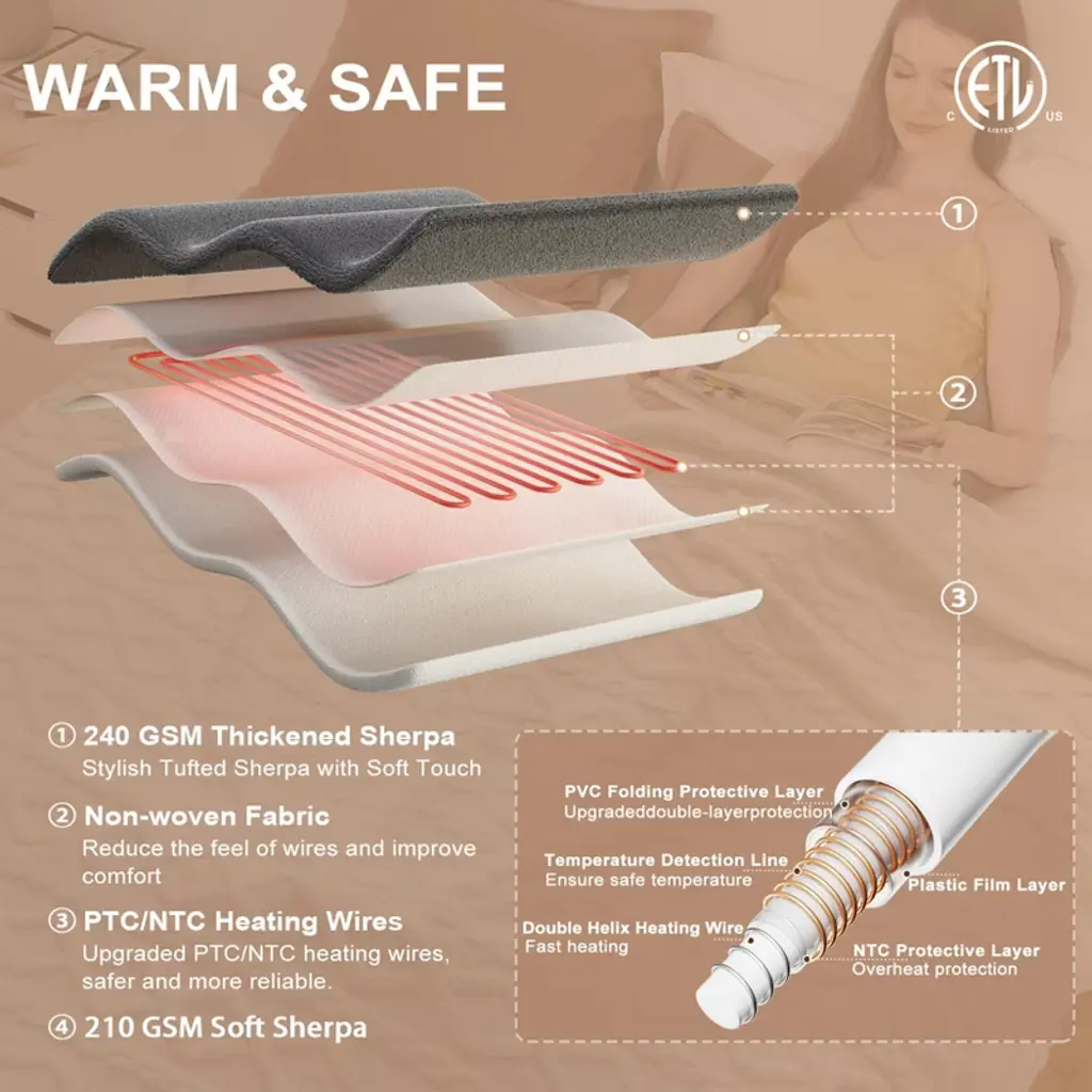 Electric Throw Blanket Heated Blanket, Tufted Heating Blankets with 6 Heating Levels &4 Hours Auto Shutoff, Overheat Protection