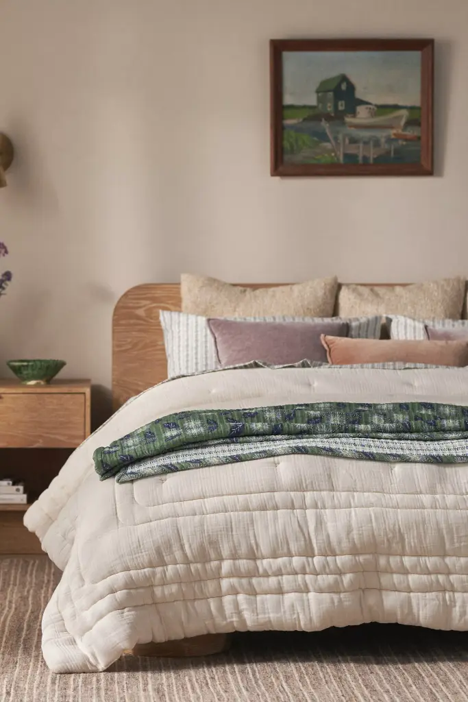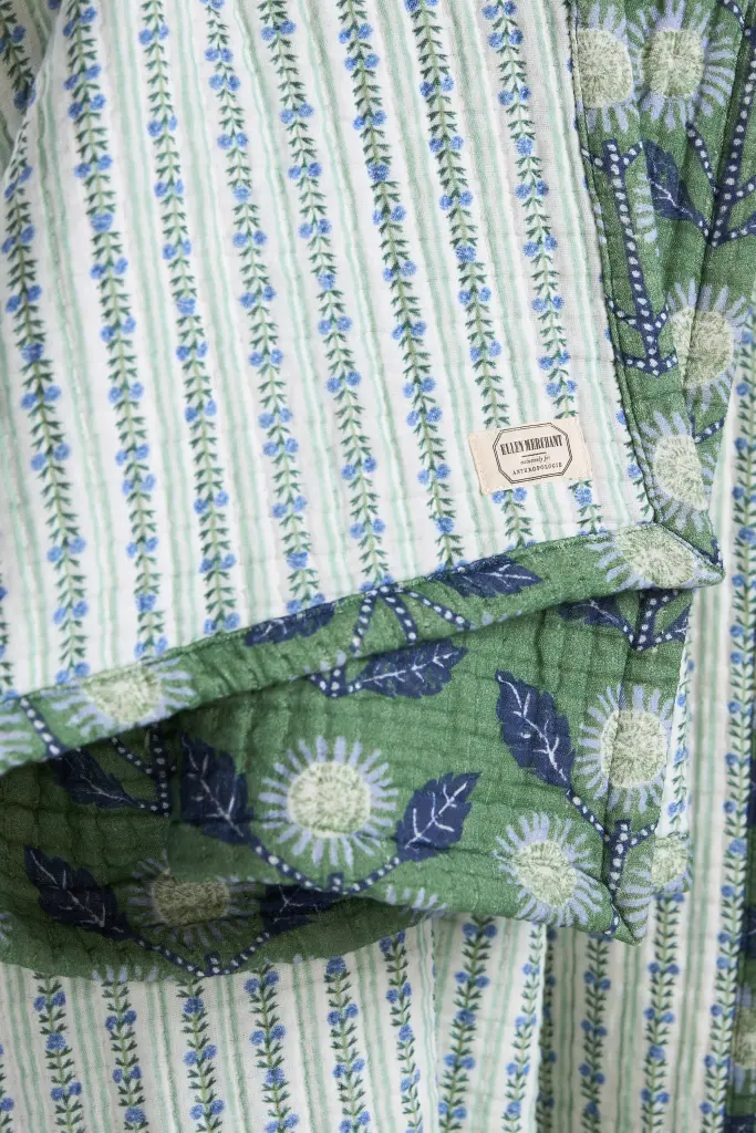 An open window, a fresh breeze, a good book, and an Ellen Merchant Throw is a cottage core lover’s paradise. Bespoke patterns, traditional craft skills, and playfully vibrant designs are a few of the many qualities that make Ellen Merchant's art aesthetic, eye-catching, and evocative of the British Arts & Crafts movement. London-based decorative artist, designer, and printmaker Ellen Merchant creates work inspired by a love of antique textiles and botanical forms.