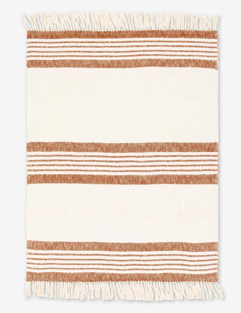 Woven with a two-tone stripe and fringed ends, this throw blanket is a cozy classic. The neutral palette offers an easy charm that we love for living rooms with a contemporary-farmhouse aesthetic.