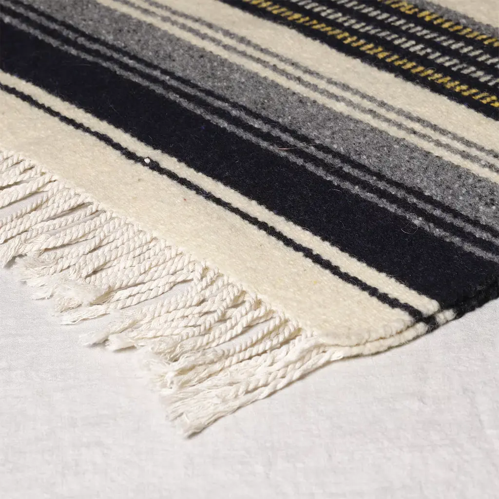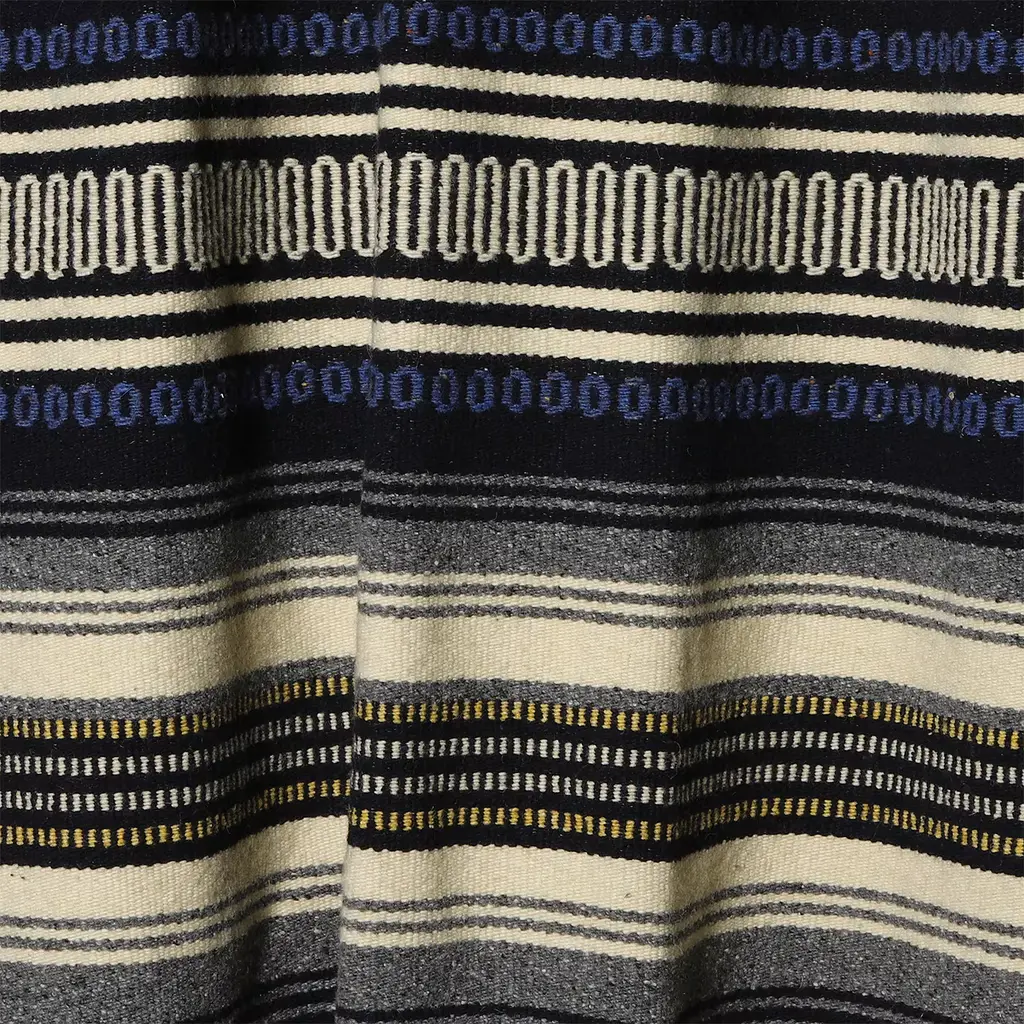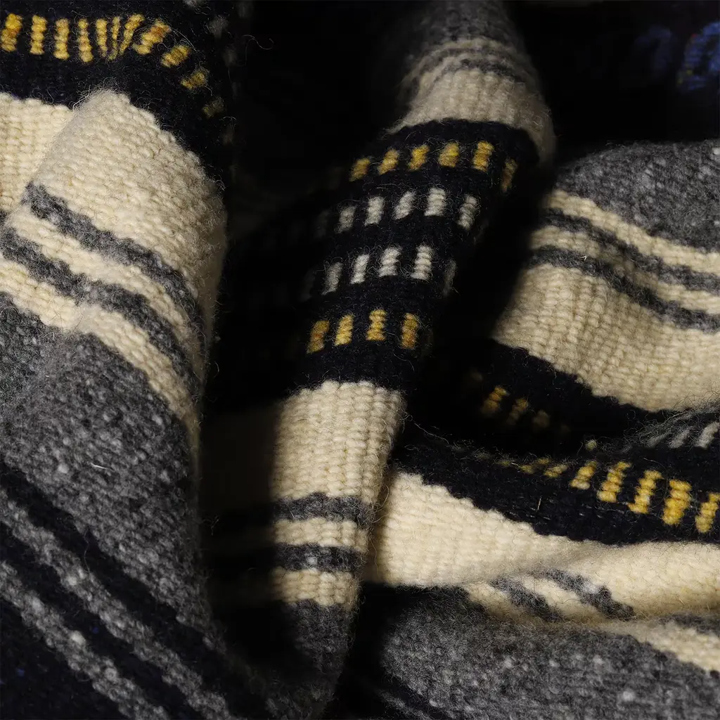 Woven with primordial looms in cotton and wool, the Faraglione blanket stands out majestically against the hopeless abyss. Its strength is drawn from the elemental motifs of wind, water, salt, and storms.