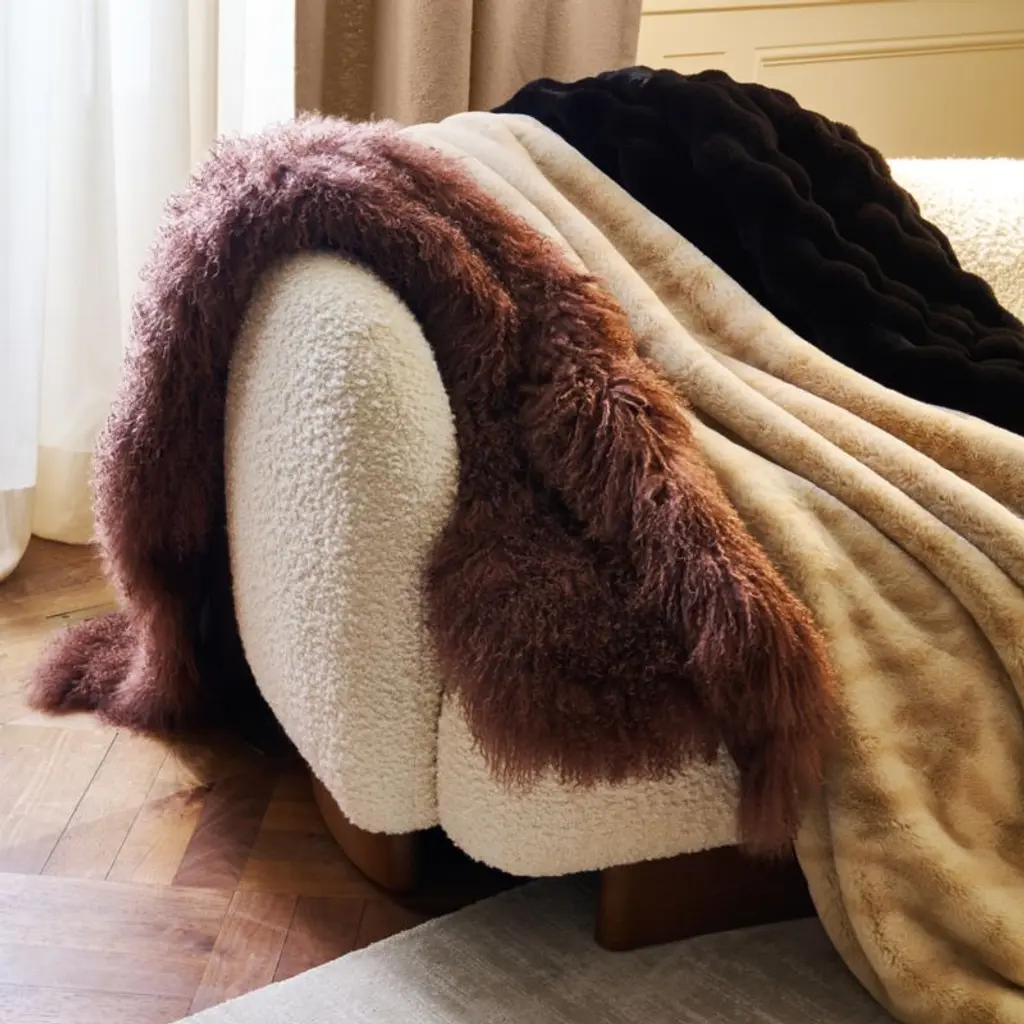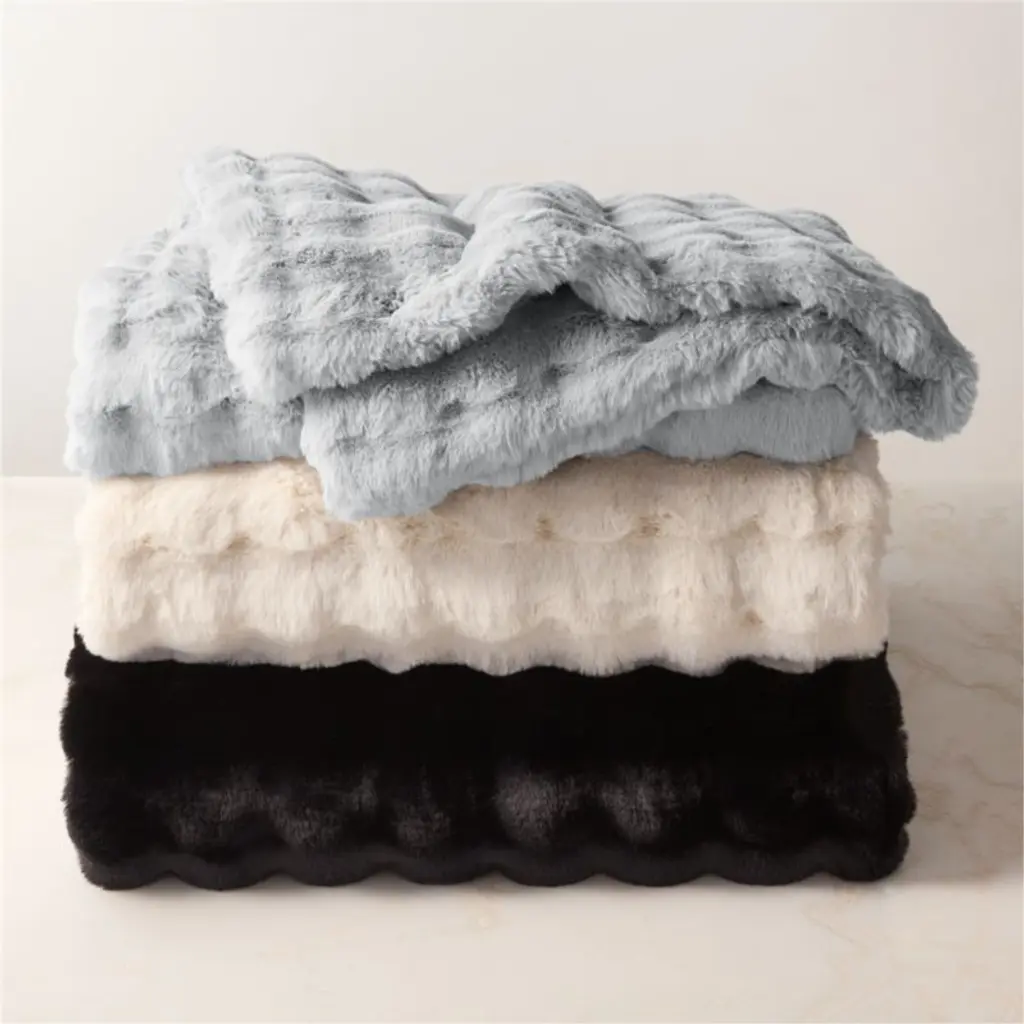 Premium faux fur throw blanket is irresistibly soft. Woven with a super-plush pile, the blanket doubles up on fur with an elevated convex bubble design on both sides, recreating the warmth and sumptuous feel of genuine fur. CB2 exclusive.