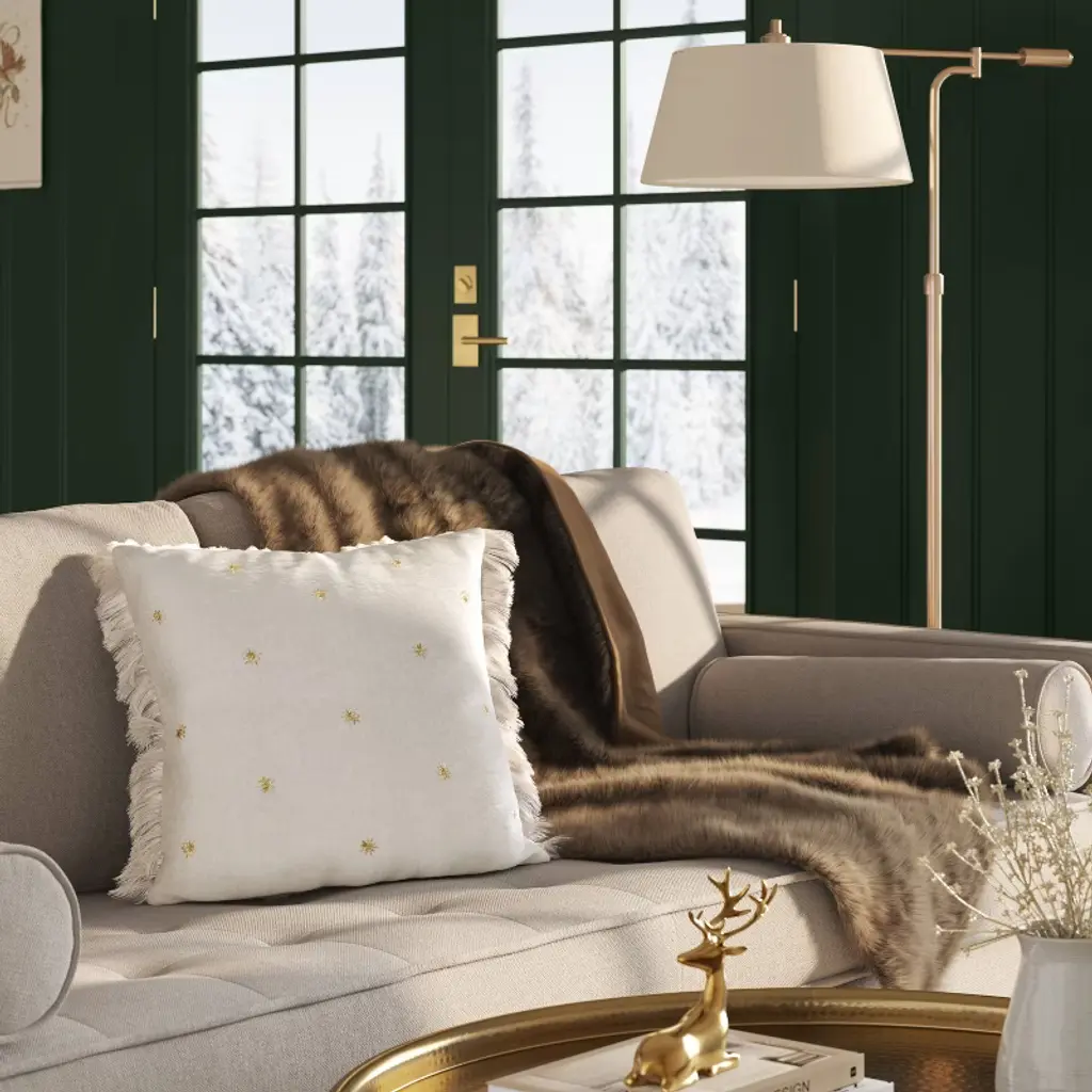 Add cozy comfort to your home with this Faux-Fur Throw Blanket from Threshold™. Made from 100% recycled polyester fabric, this rectangular blanket showcases a super-soft faux-fur surface. Perfect for curling up during cooler evenings or draping over furniture as a decorative accent, this midweight blanket offers easy care with its machine-washable fabric.Threshold™: Looks like home, feels like you.