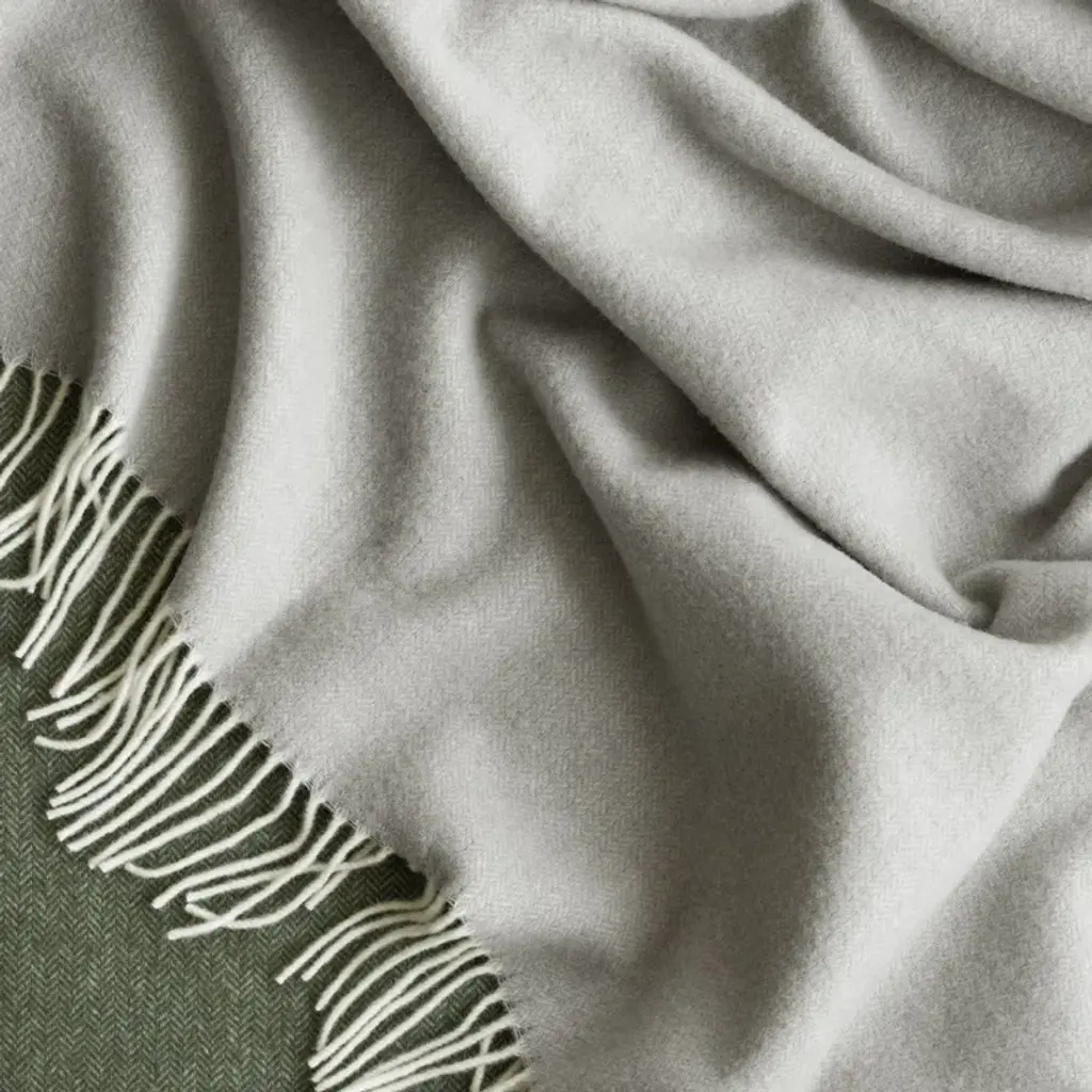 Discover the FINHO Merino Wool Throw, a luxurious home accessory that combines comfort and style. Throw is made of 100% mulesing free Merino Wool in Eastern Europe. FINHO features an elegant herringbone pattern with a harmonious two-tone color, accented with delicate fringing.