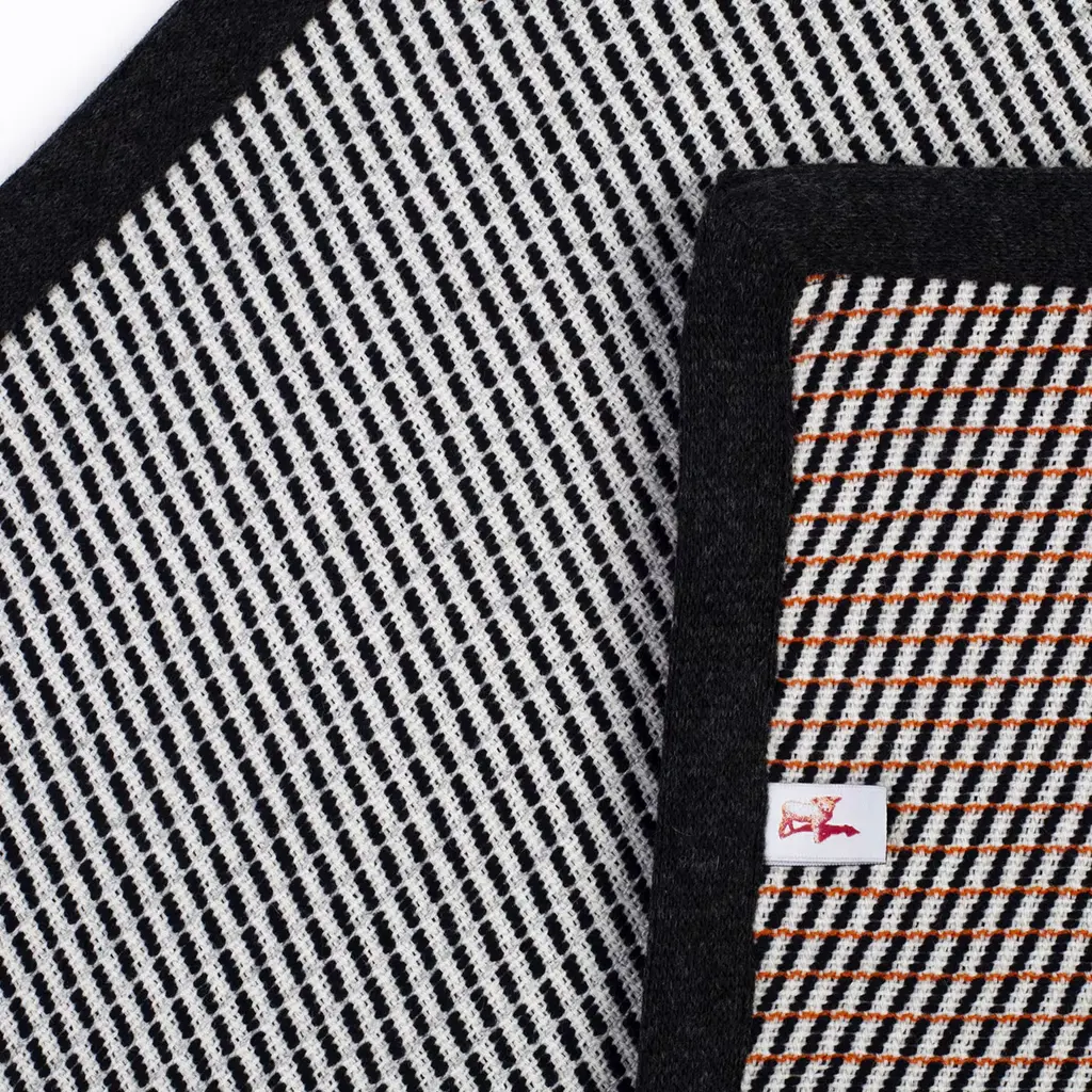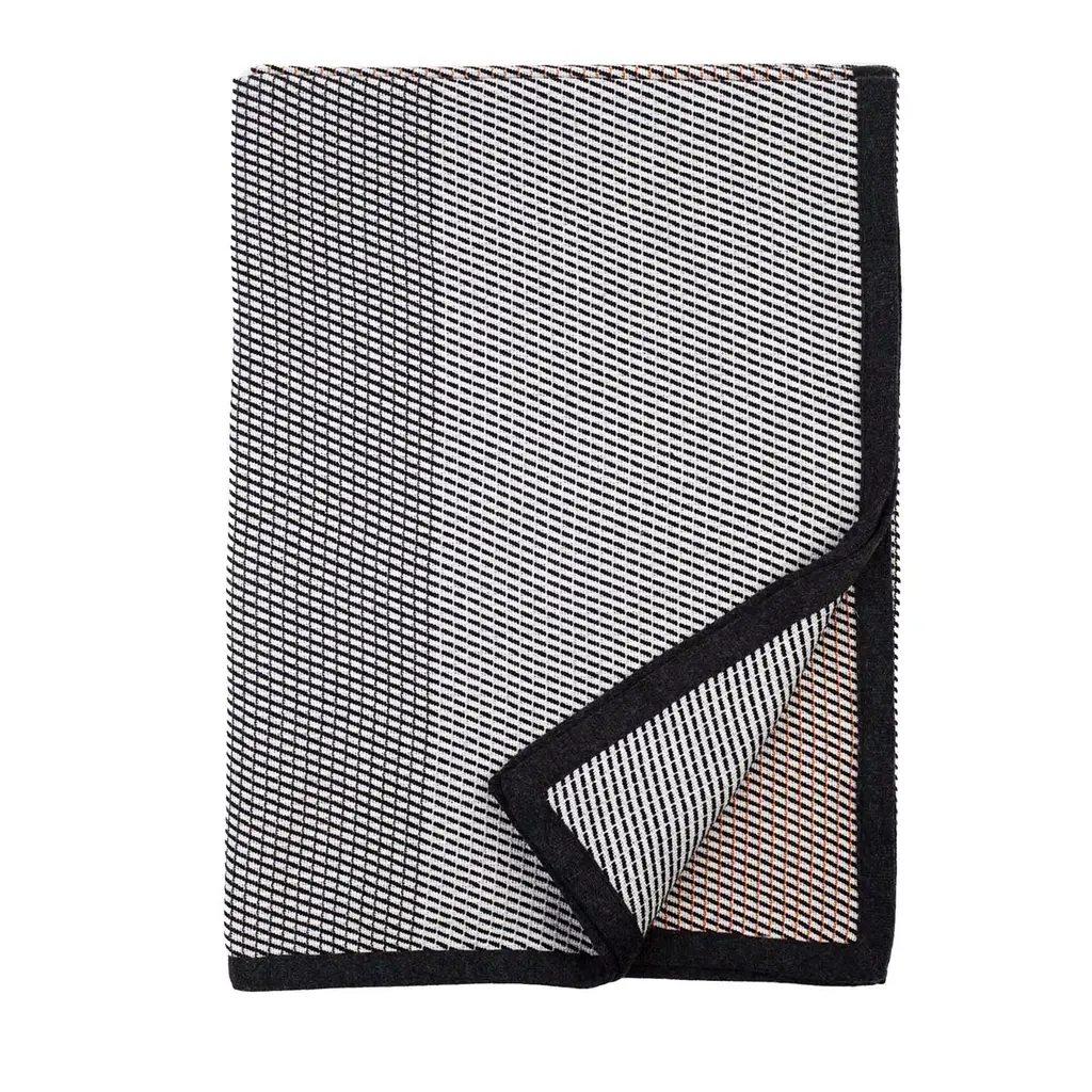 Cozy up to this luxurious throw blanket by Esther Van Schuylenbergh that is made from 100% wool and woven into a pretty dobby weave. This blanket has small geometrical woven patterns and structures in dark and light gray and rust, for a sophisticated, modern look that you’ll want to curl up under on cool evenings.