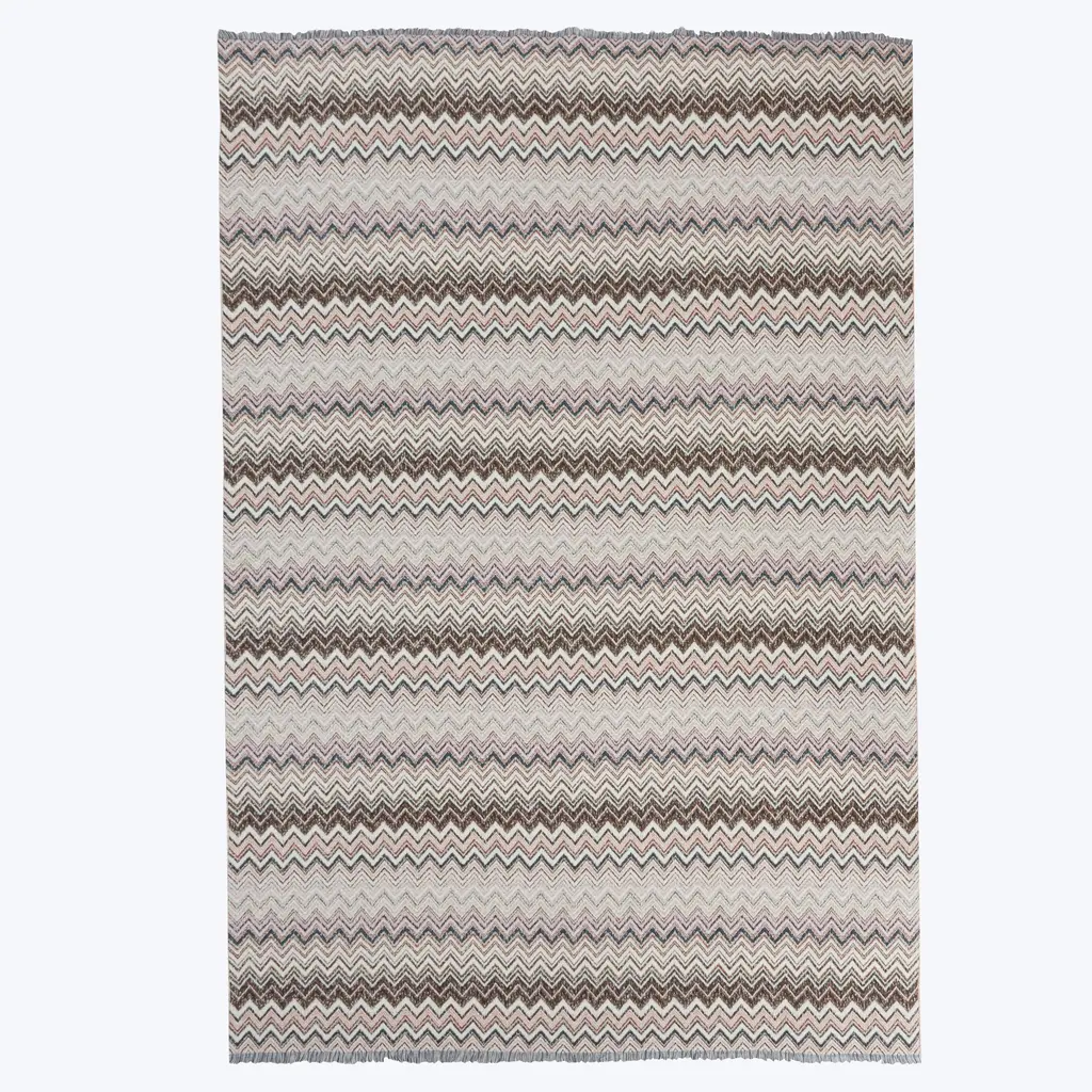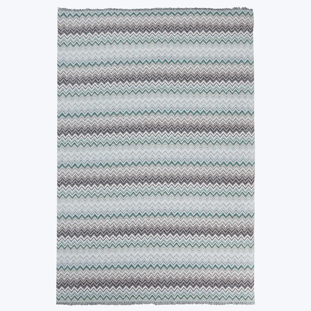 The Missoni Home cotton-wool blend blanket is made of a refined blend of materials, enriched with a hint of cashmere for an extra touch of softness. Characterised by the chevron pattern, the blanket is further embellished by the fringed edges, which add a touch of elegance and sophistication.