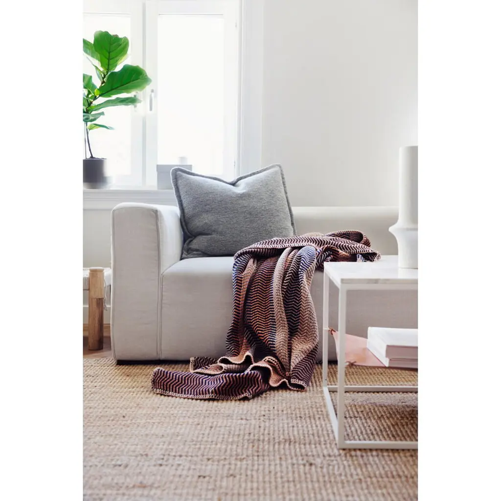 Røros Tweed's Fri throw is just the ticket for all those seeking cozy, top-quality Scandinavian textiles. With the Fri series, designers Torbjørn Anderssen and Espen Voll set out to reinterpret the look of traditional table cloths, referred to as løpere in Norwegian. The design duo re-envisioned the repetitive color pattern typical of the original design and established a zigzag motif. With its soft visual effect, Røros Tweed's Fri throw draws you in to feel its pleasant surface and curl up with your novel of choice. High-quality home textiles by the Norwegian Røros Tweed are made from 100% Norwegian lambswool, shorn from sheep living free in the mountains. The manufacturing process is also kept fully in Norway to maintain high standards, which have been essential to the company's continued success since the 1940s.
