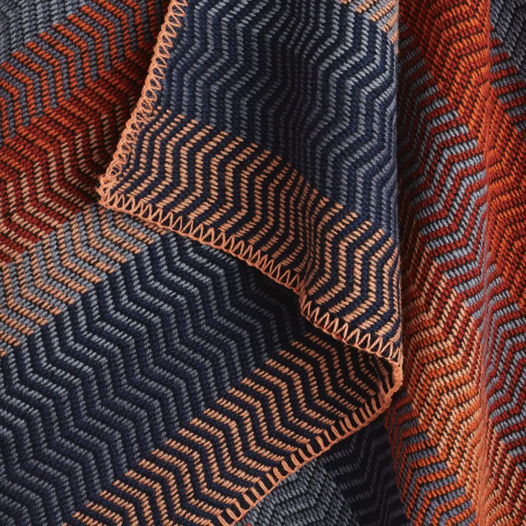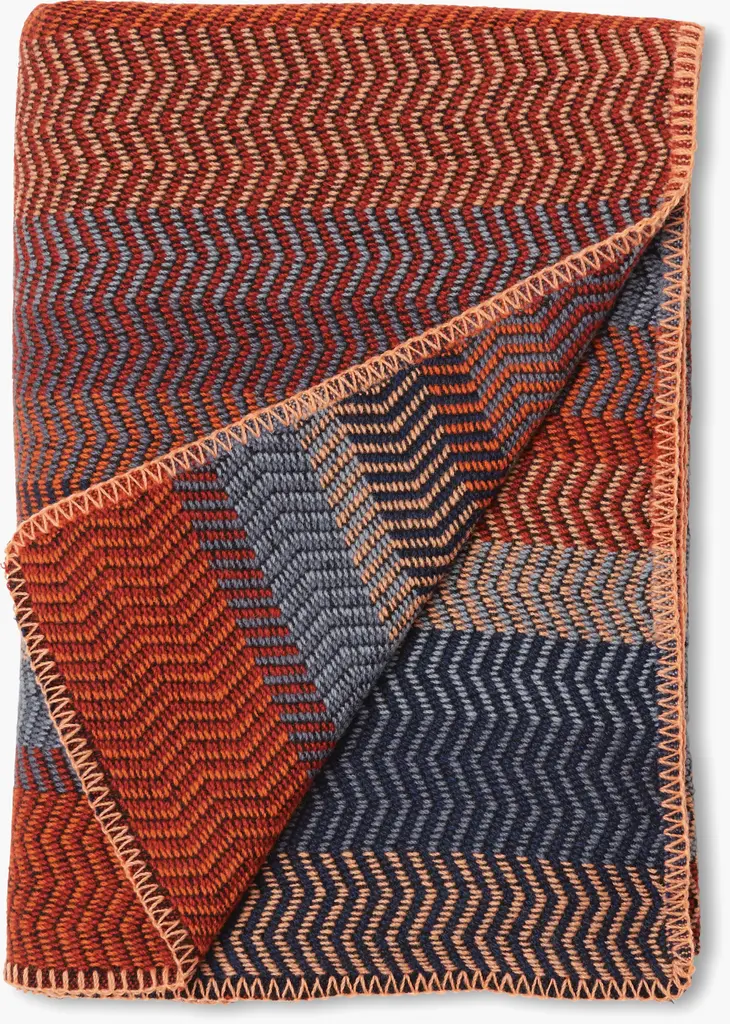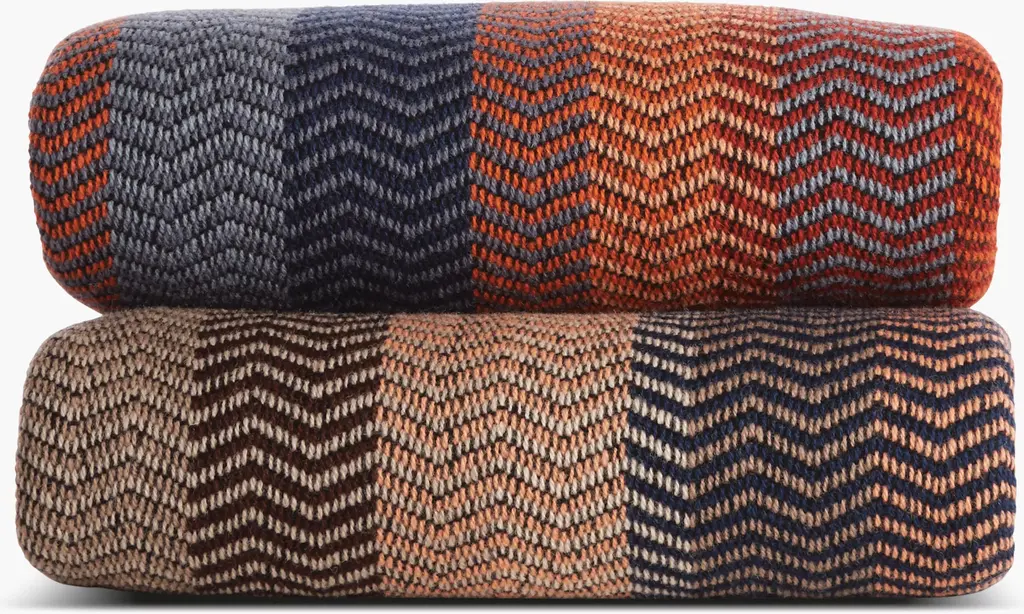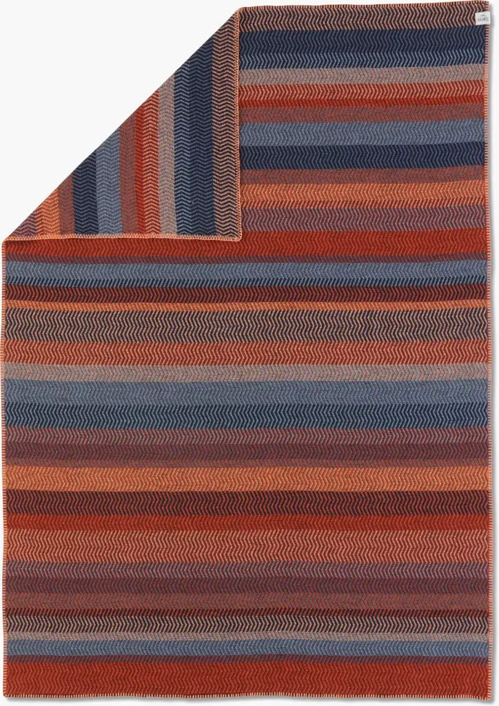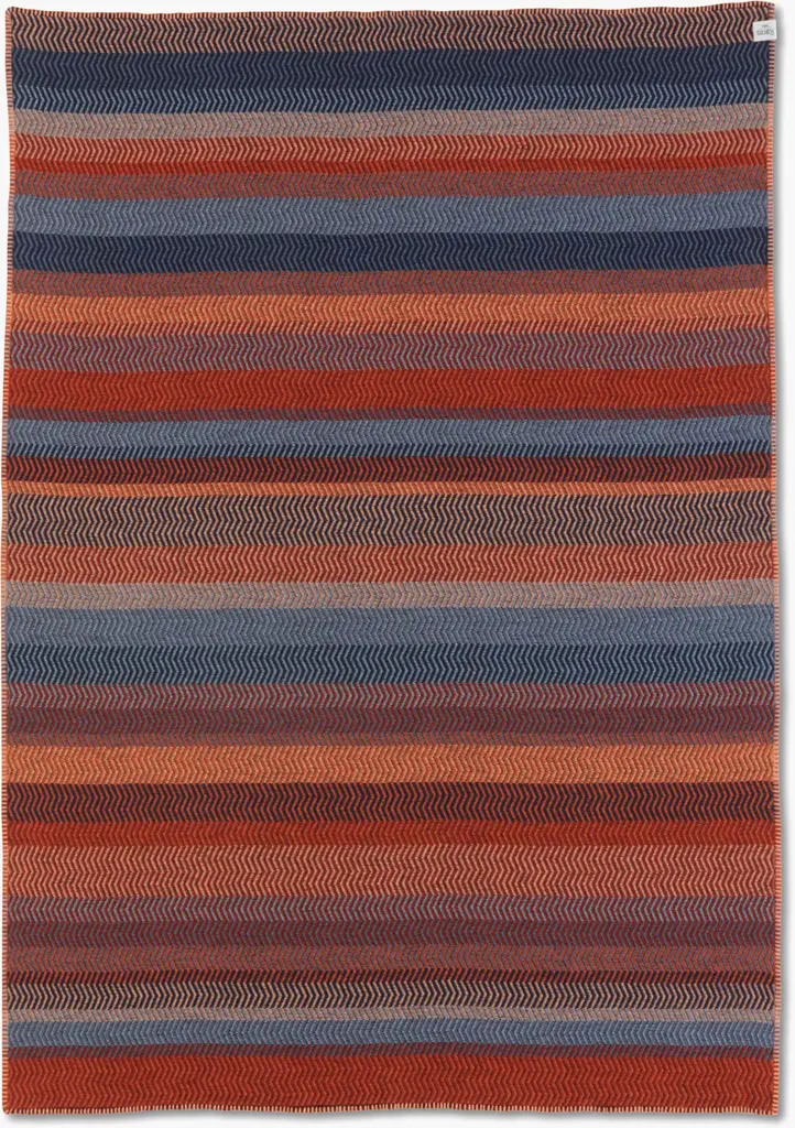 Crafted by Røros Tweed, a leading Norwegian producer of fine textiles, Fri (2020) is a soft and lightweight lambswool throw inspired by small rectangular tablecloths called “løpere," which can be found in mountain cabins all over Norway. In this interpretation, bands of vibrant color in randomized thicknesses are accented by a meandering zigzag texture. Made in Norway.