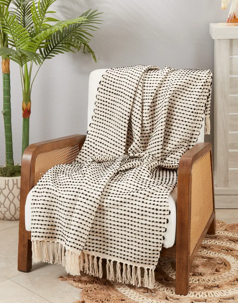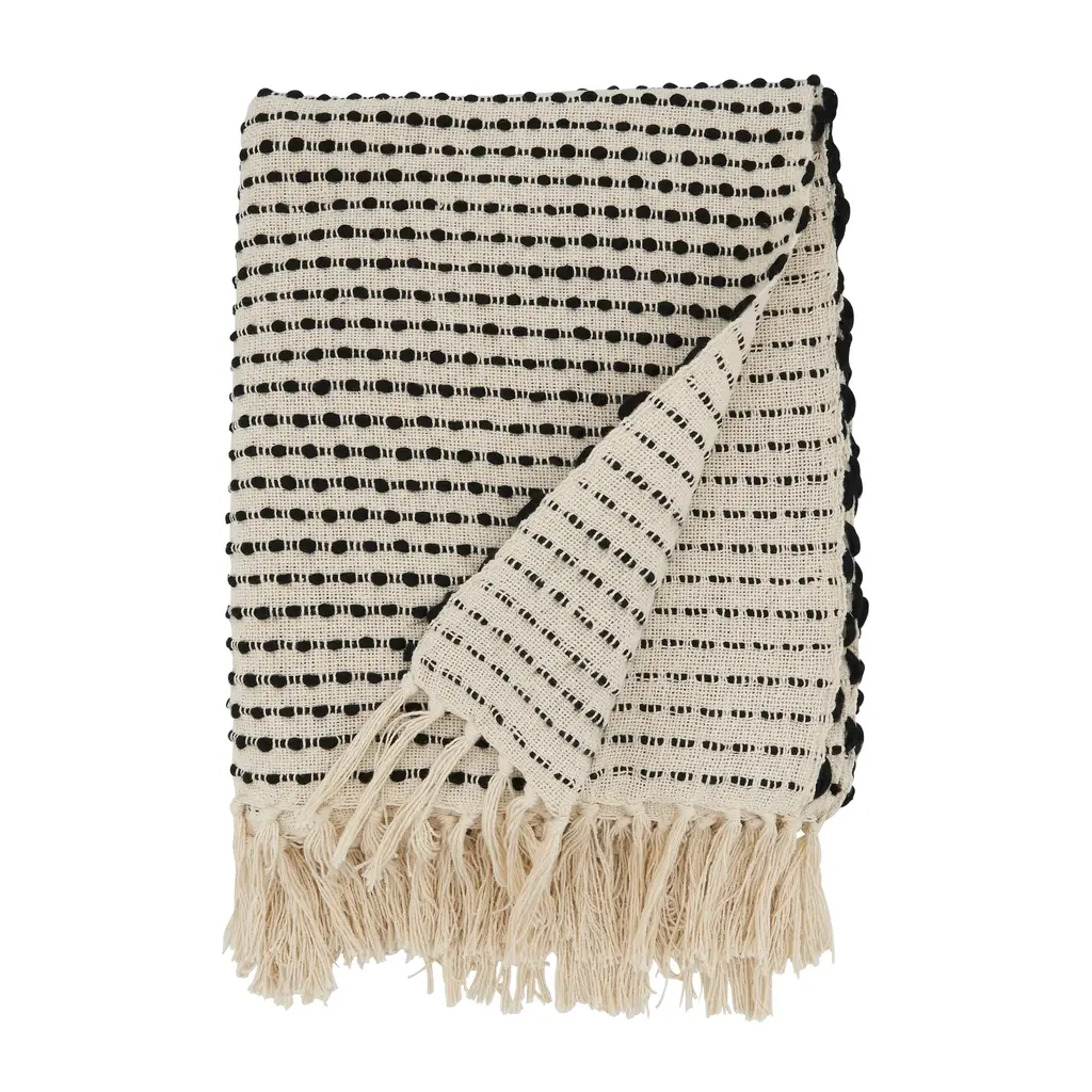 Fringe Finesse Textured Stripe Woven Throw Blanket - Black