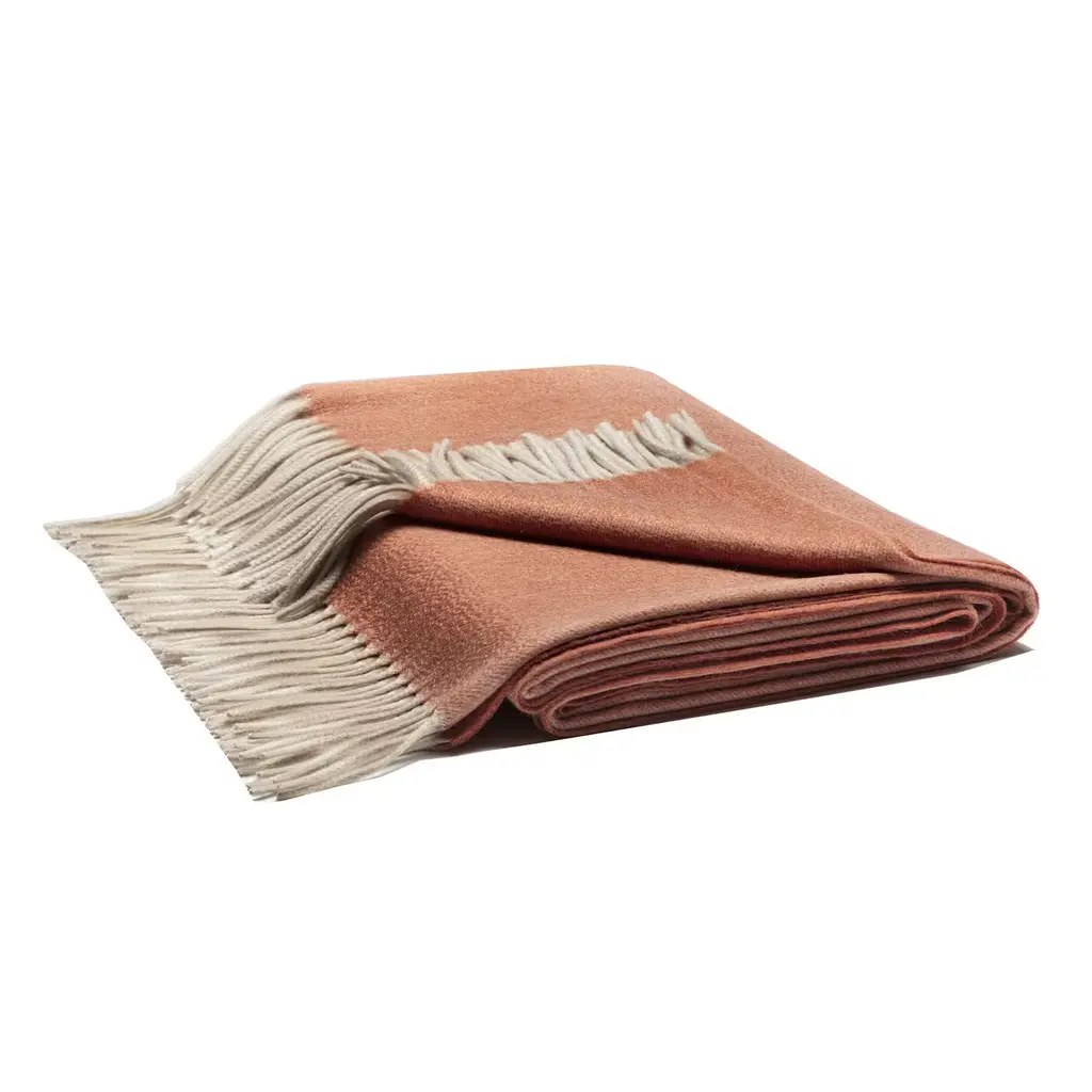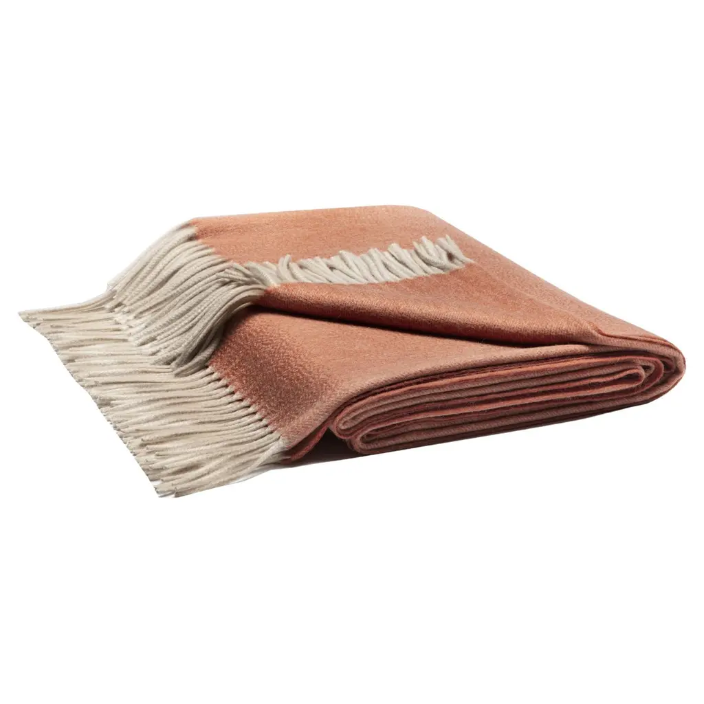 Fringe Zibelline 100% Cashmere Throw Orange Blanket