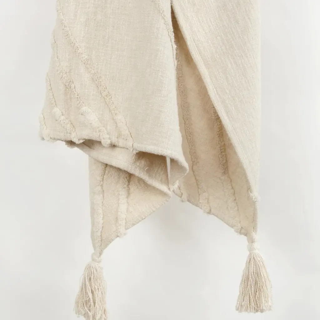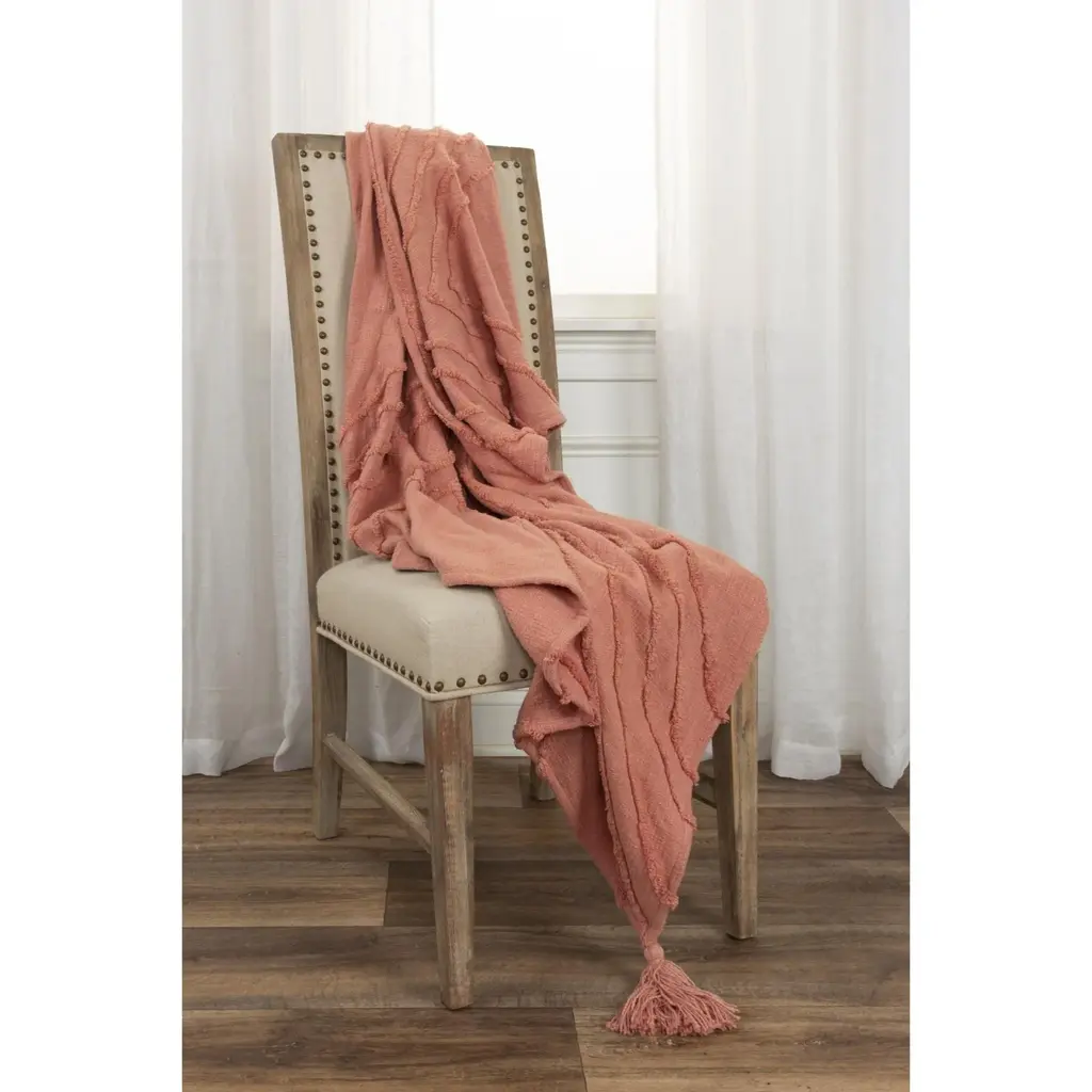 With intricate hand-tufted detailing, this gorgeous throw is the epitome of refined boho chic style, woven using slubbed yarns for a textured, transitional ikat design. In a rich coral hue, this piece will add a pop of color to any décor, with the added benefit of ultra comfort. The warp yarns are hand-tied into tassels, adding a finishing element of refined texture and warmth. This medium to heavy-weight throw is specially washed for extra softness, perfect for snuggling on chilly evenings. Add an air of sophistication and coziness to your living room, bedroom, or outdoor space with this hand-crafted, high-quality throw. This 50" x 60" textured cotton throw is not only functional, but features a stunning design in beautiful coral.