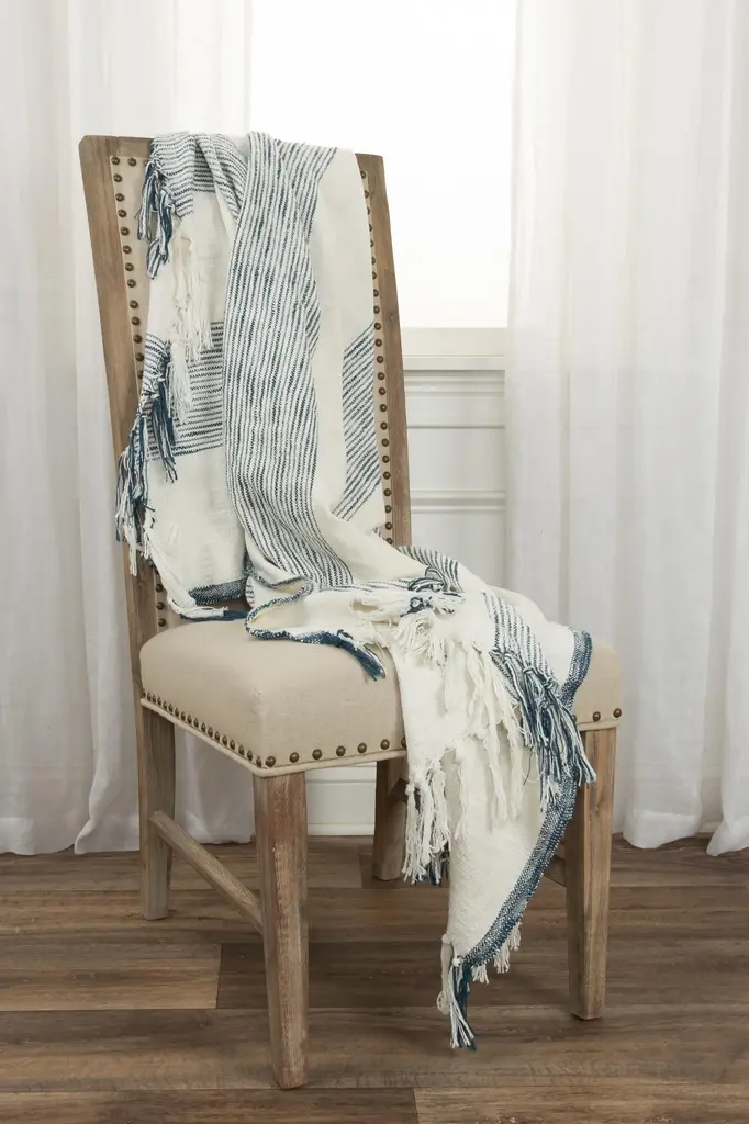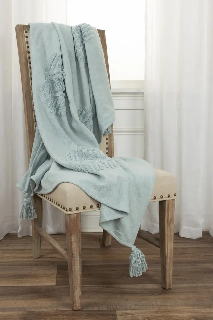 Geometric 100% Woven Textured Cotton Throw - Aqua