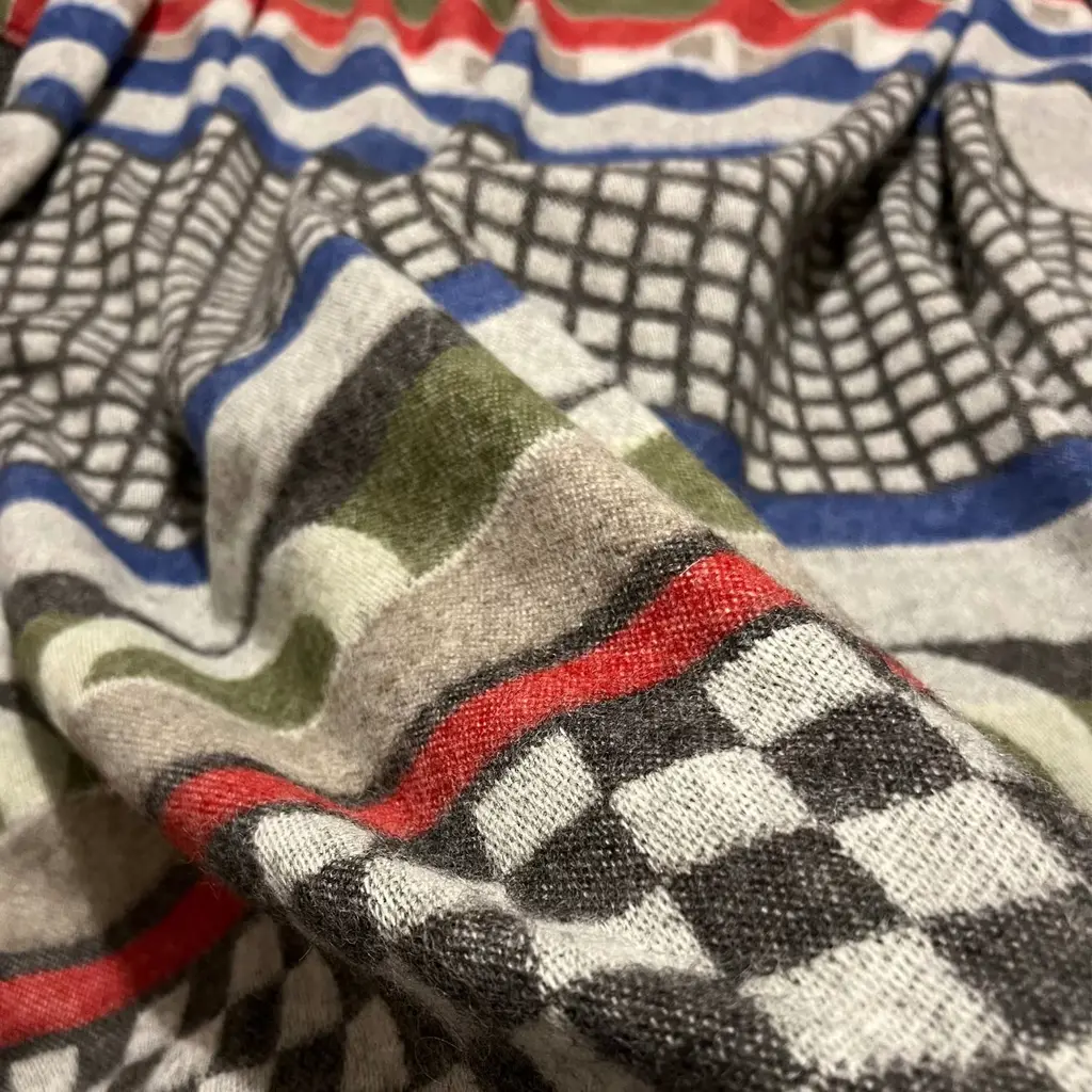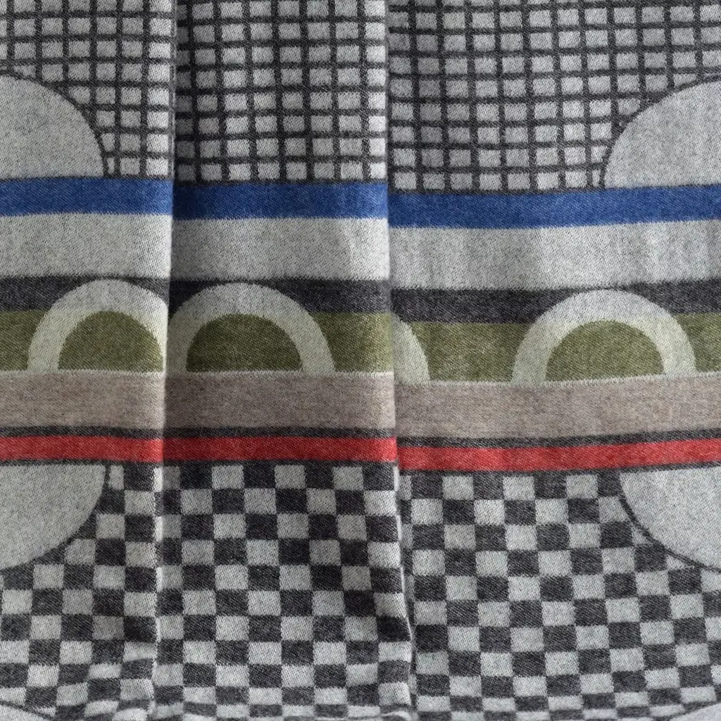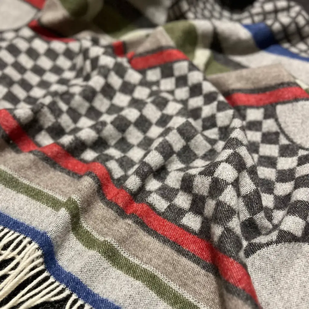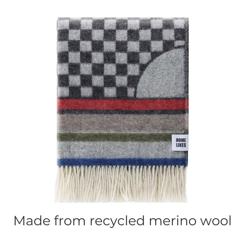 Bold and contemporary, our Geometric Throw is a must-have for any modern living space, designed to make a striking statement with its eye-catching pattern. Fully reversible, this throw adds a touch of texture and a stylish twist to your decor, whether you’re curled up on the sofa for a cosy night in or lounging in your favourite armchair with a good book.Crafted from a thoughtful blend of new wool and recycled merino wool, it offers both warmth and sustainability, making it as practical as it is beautiful. Measuring 130 x 190 cm, it’s perfect for adding visual interest and a layer of comfort to any room. Finished with a classic fringed edge, this throw is a chic, eco-friendly addition that brings a touch of bold sophistication and modern flair to your space.