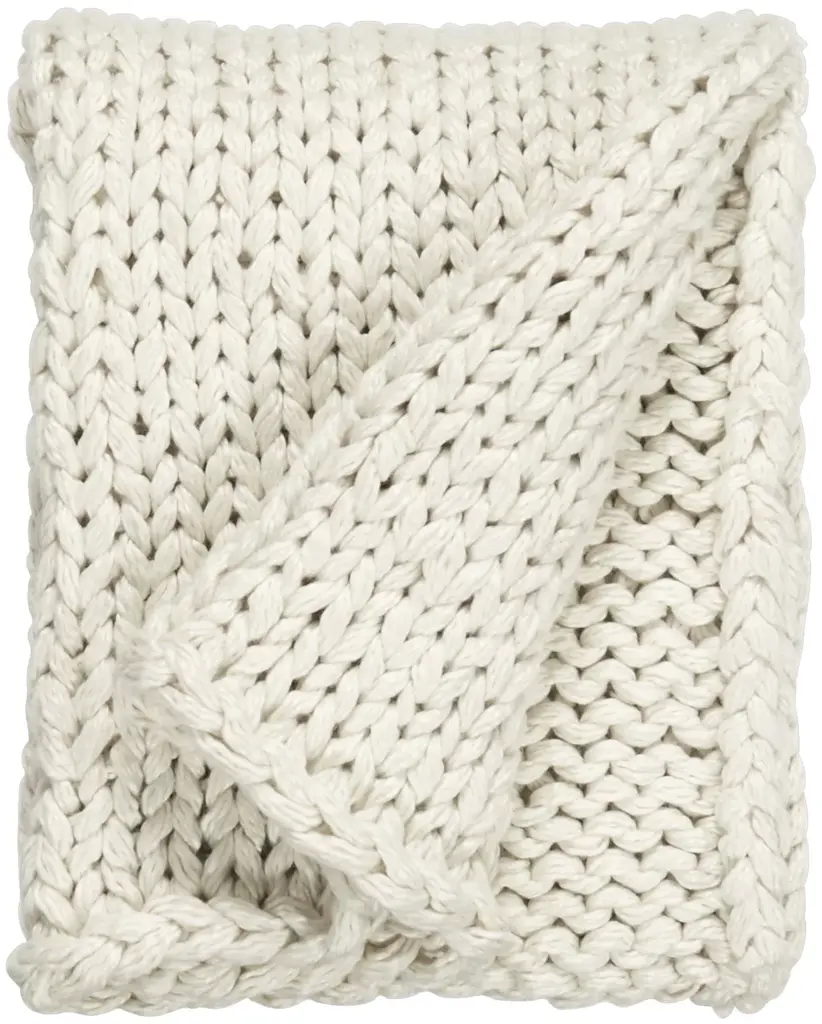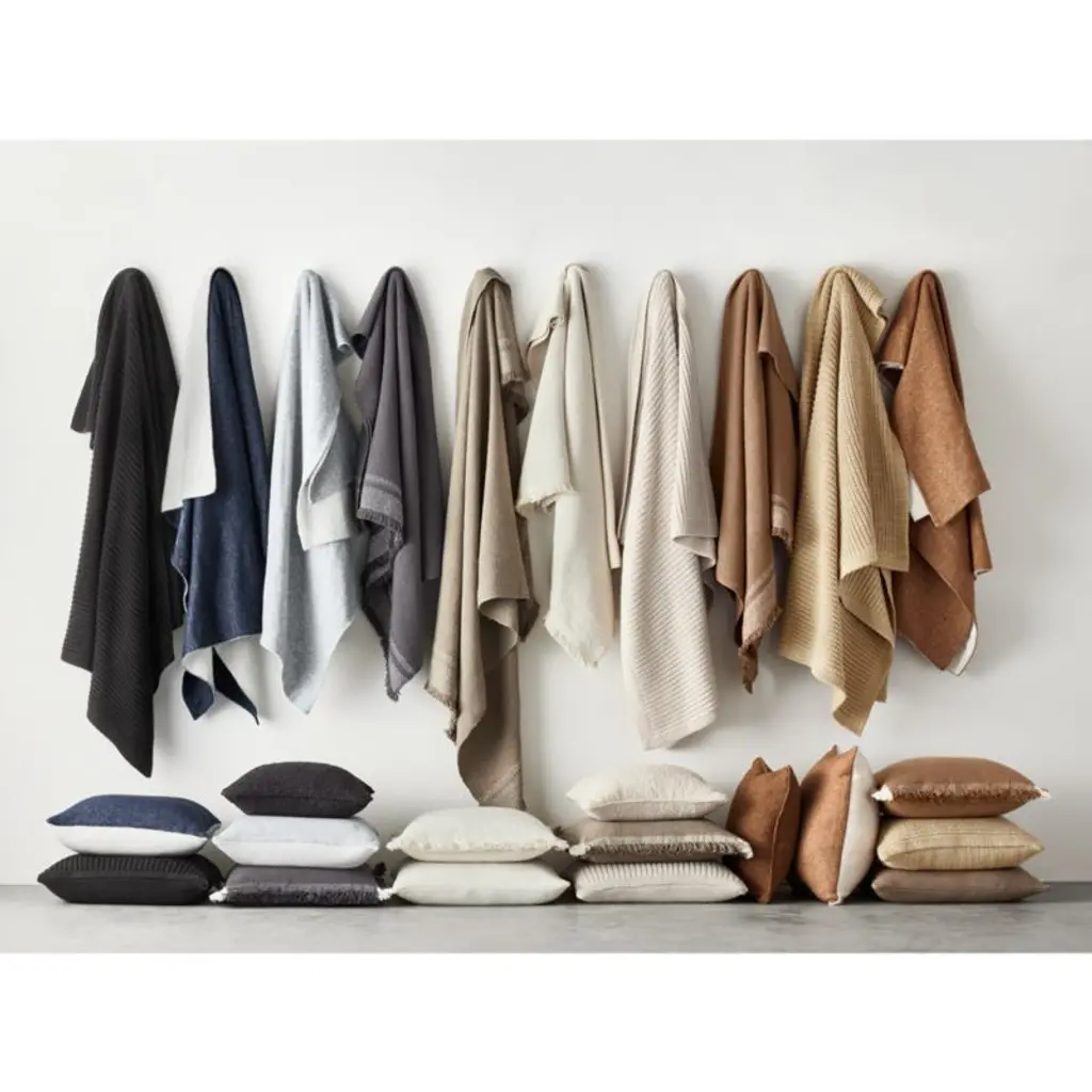 This beige throw has the classic-yet-casual look of ribbed fisherman's sweater. Bordered with a contrasting stitch, the knit blanket coordinates with the matching ginger-hued pillow as well as other pillows in our collection. Drape the wool-blend throw on a sofa or foot of the bed for easy access to its snuggly warmth and cozy, comforting weight.