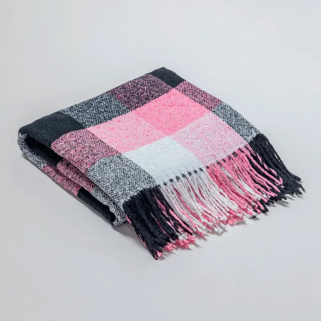 Gingham-Patterned Fringed Throw Blanket From Ukraine- Yarns For Peace