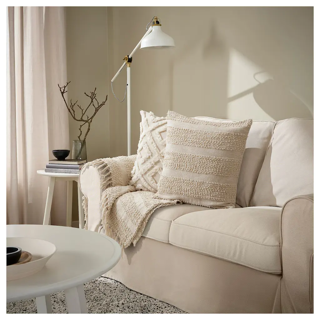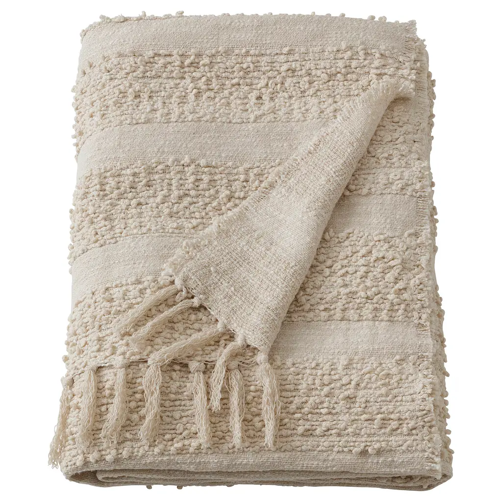 GÖLSTARR Throw - natural/beige 51x67 ". Easy to match with other cushions and a warming throw on the sofa or in the bed. The throw feels soft against your skin and can be machine washed. Cotton is a soft and easy-care natural material that you can machine wash.