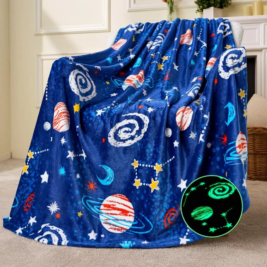 Goodgram Space Adventures Rocket Ships & Planets Glow In The Dark Ultra Soft & Plush Fleece Accent Throw Blanket - 50 In. X 60 In.