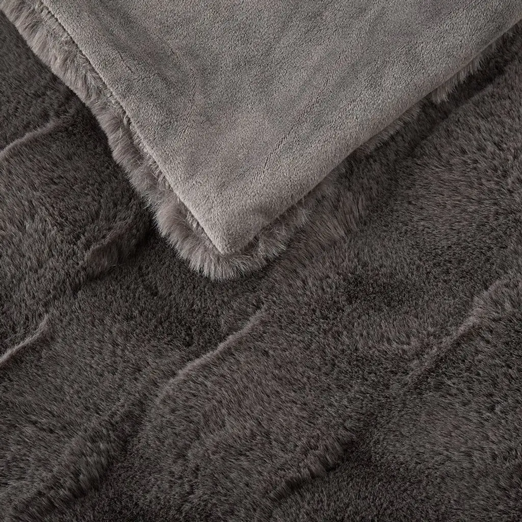 Gracie Mills Barry Faux Fur Basket Weave Throw - Throw - Grey