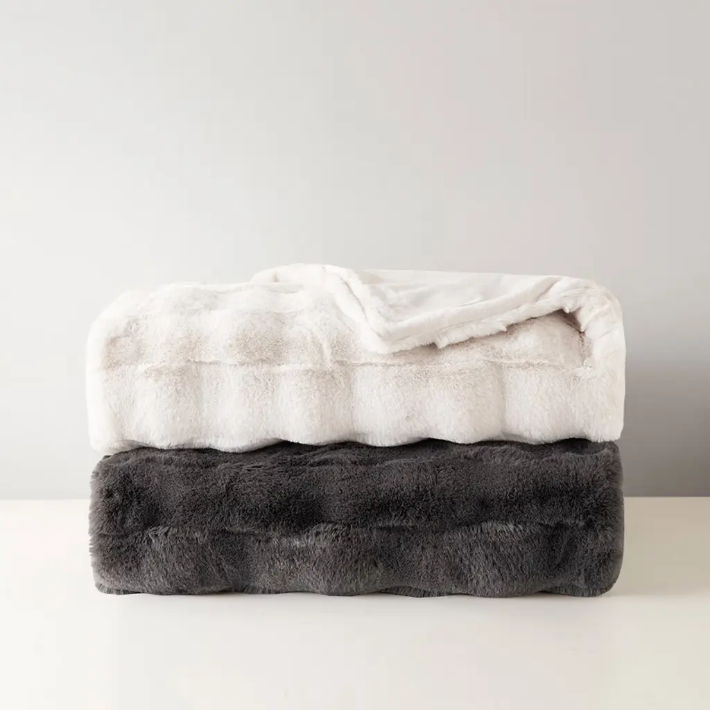 Experience the ultimate in luxury and warmth with our faux fur throw. The fur face boasts a textured basket weave pattern, while the neutral color options create a beautiful and stylish aesthetic to complement any decor. For your convenience, this throw is machine washable and Oeko-Tex certified for quality comfort and wellness. Elevate your living room with the lavish comfort of our Luxurious Faux Fur Basket Weave Throw.