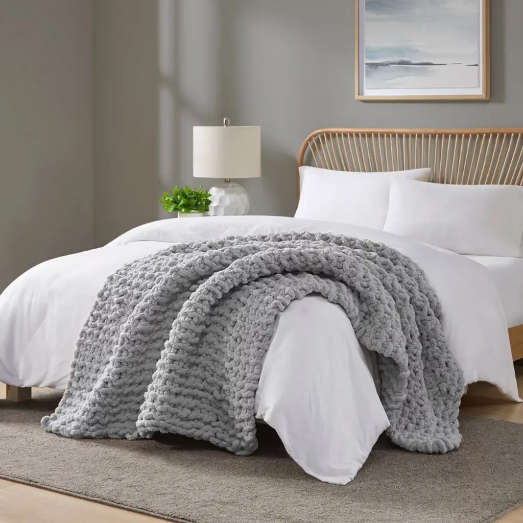 Gracie Mills Dana Handmade Chenille Chunky Knit Throw Blanket - Throw - Grey