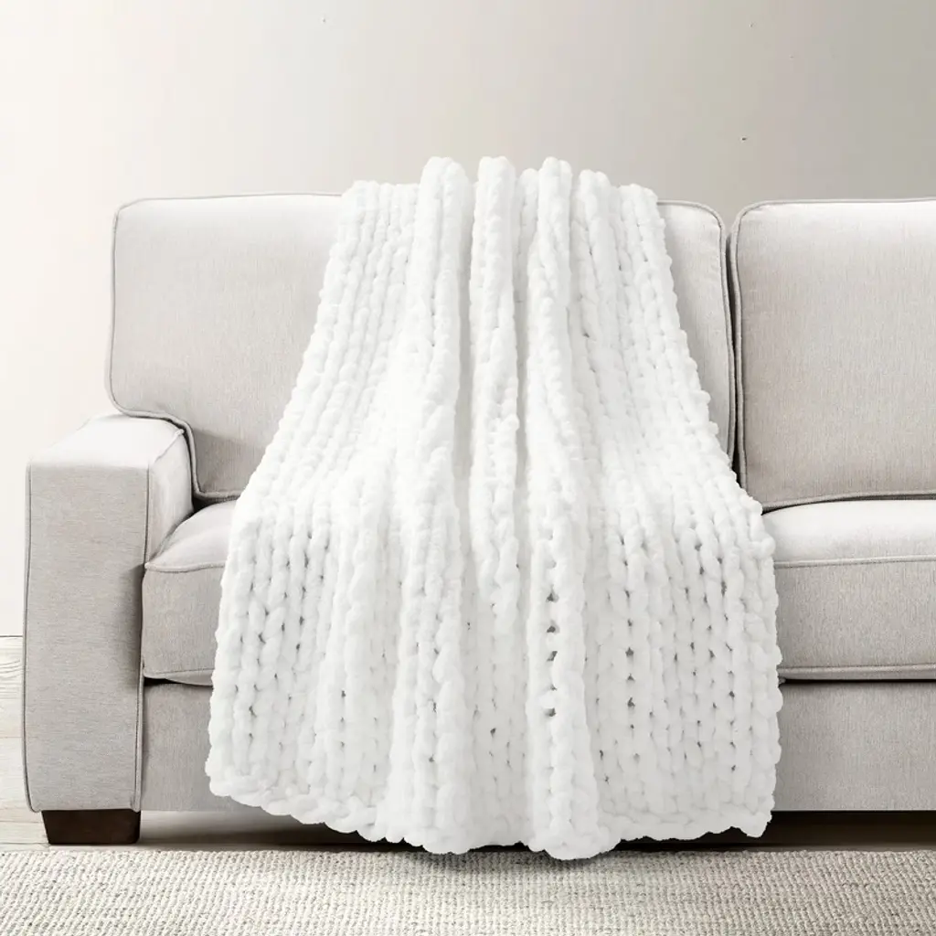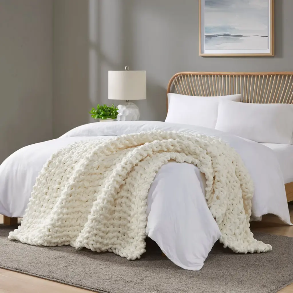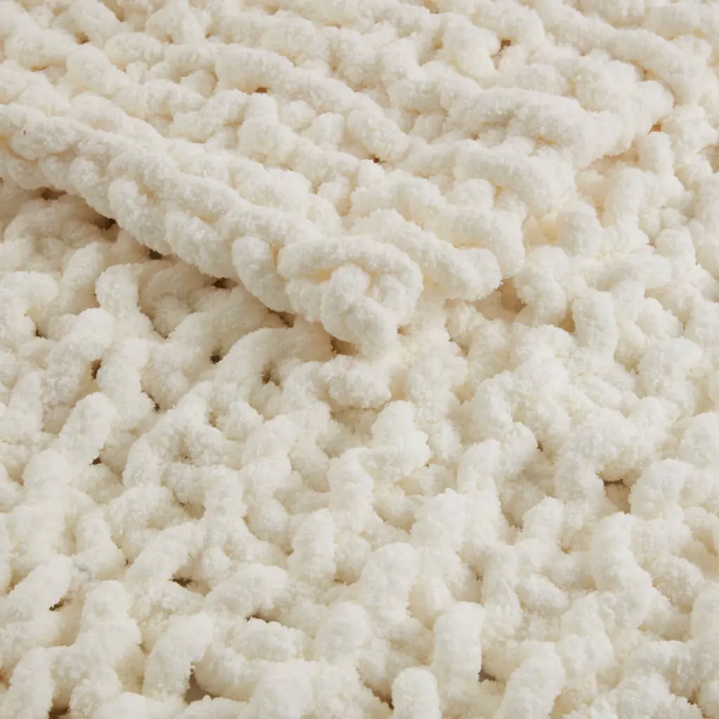 Gracie Mills Dana Handmade Chenille Chunky Knit Throw Blanket - Throw - Ivory