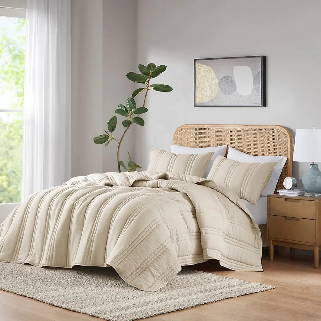 Gracie Mills Estrella Poly Gauze Quilt Set - Throw - Natural