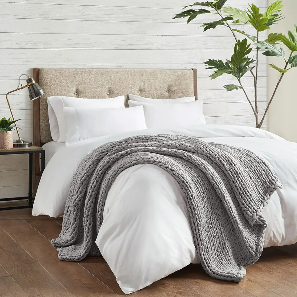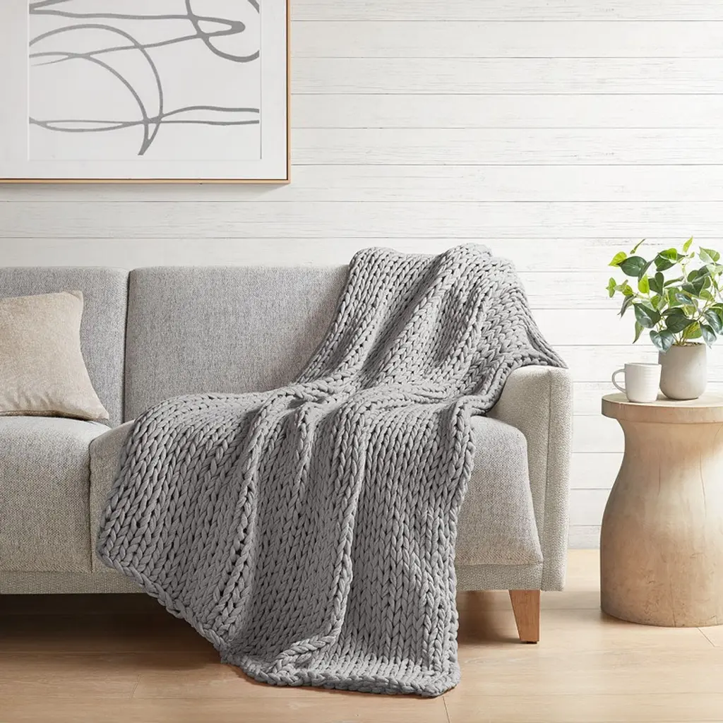 Gracie Mills Huffman Artisan Double-knit Throw - Throw - Grey