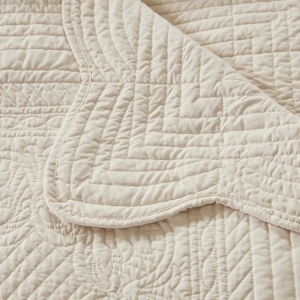 Gracie Mills Salvatore Oversized Stitched Scalloped Edges Throw Blanket - Throw - Cream