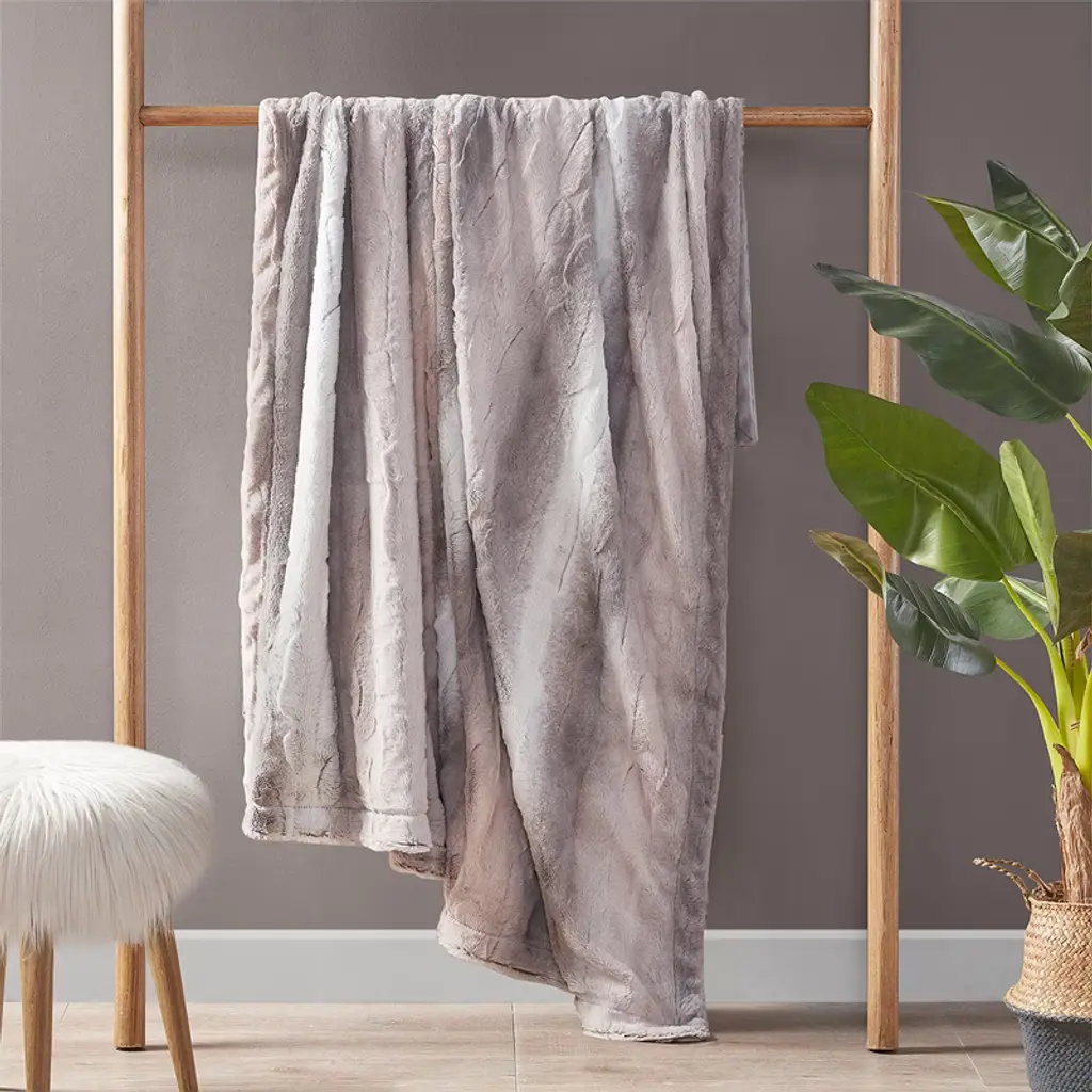 Gracie Mills Shawn Brushed Faux Fur To Mink Oversized Throw - Throw - Blush/grey