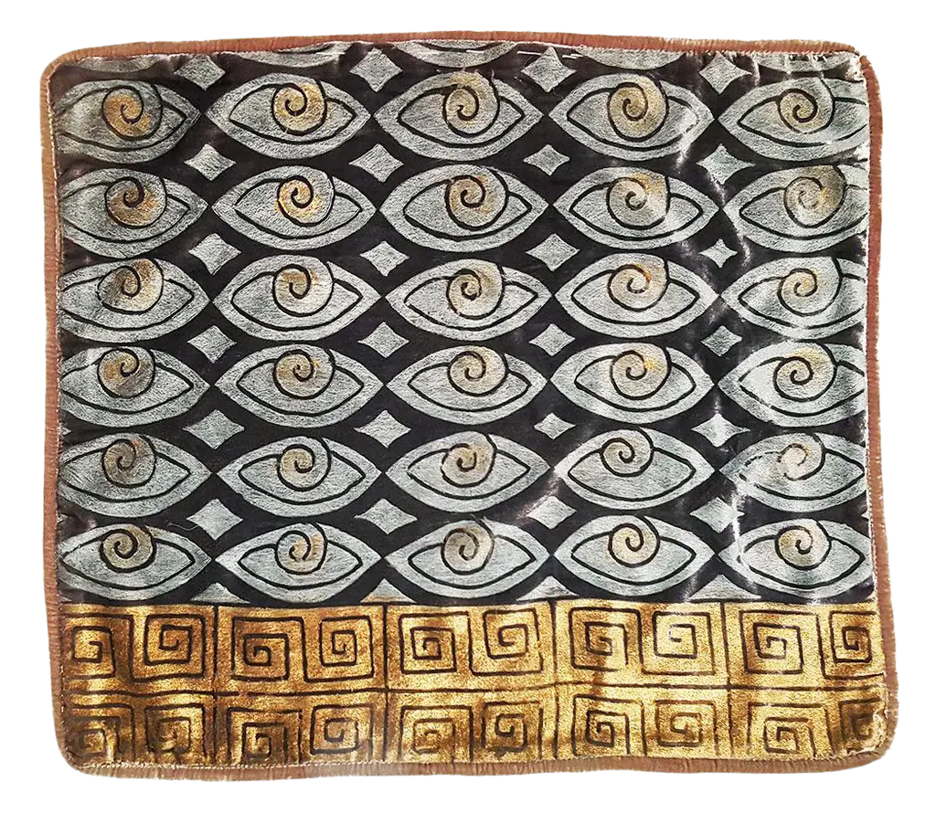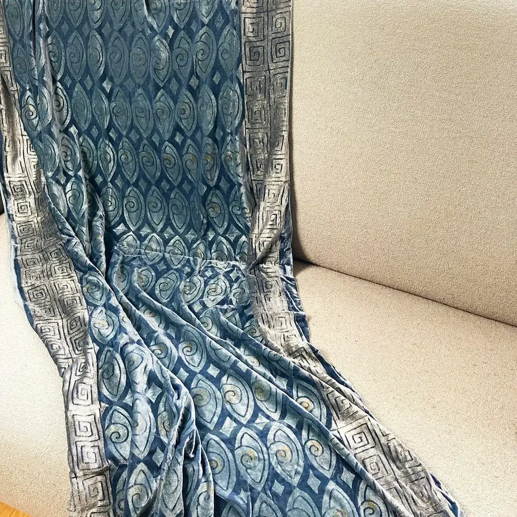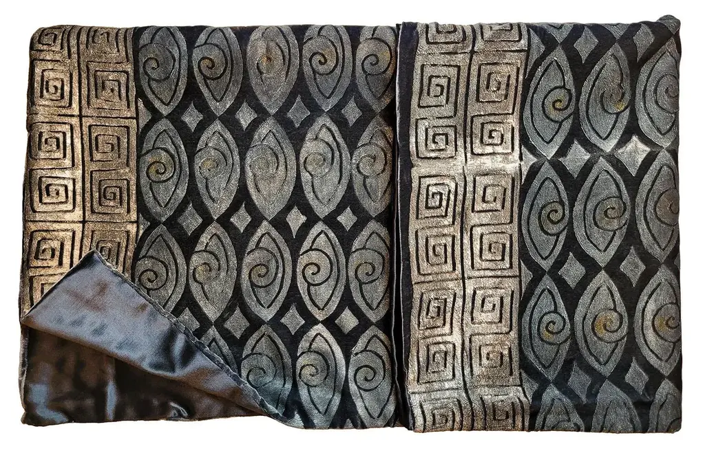 Via Venezia Textiles" extravagant pieces reflect a brilliant infusion of hand-dyed and hand-painted colors and designs that come crashing through every piece with old world and modern charm, while cultivating chic connoisseurship based on ancient motifs and architectural designs from around the world. Via Venezia Textiles features hand-dyed silk velvets and linens that have been created using illustrated wooden blocks, which in turn have been carved and painted entirely by hand to adorn pillows and other decorative linens. The final result is a one-of-a-kind masterpiece of Venetian artistry that is fit for a palace, creating a style like none other for each of its collectors. The studio will come as close as possible to the requested size and color. Any variation will be due to the custom nature of the paint mixture, size of the blocks, and to avoid any compromise in the design.