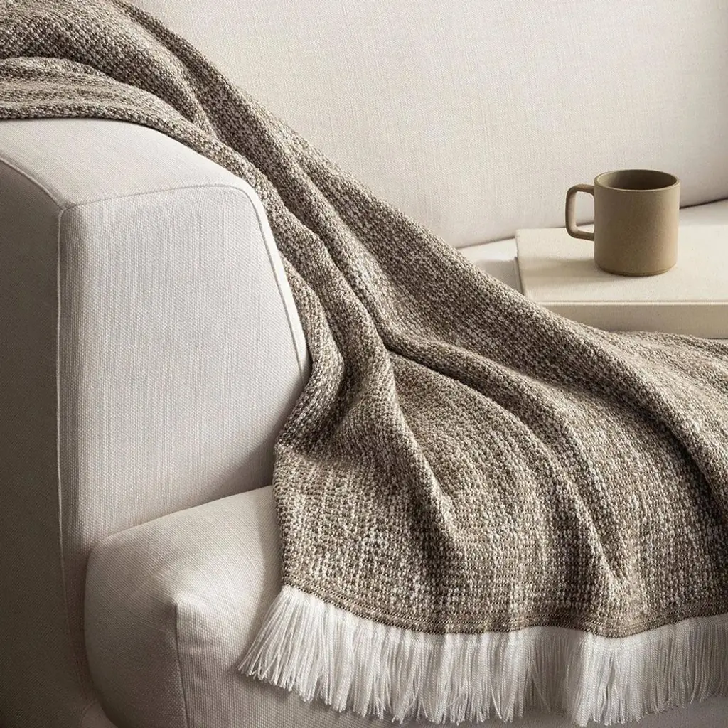 Haleigh Brown Crosshatch Textured Indoor / Outdoor Throw Blanket