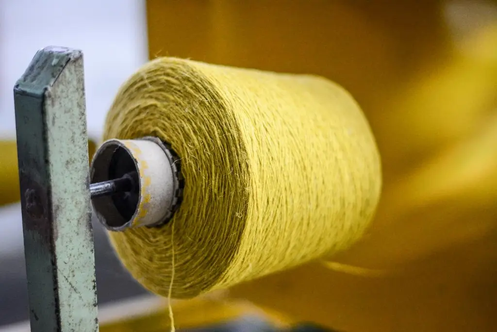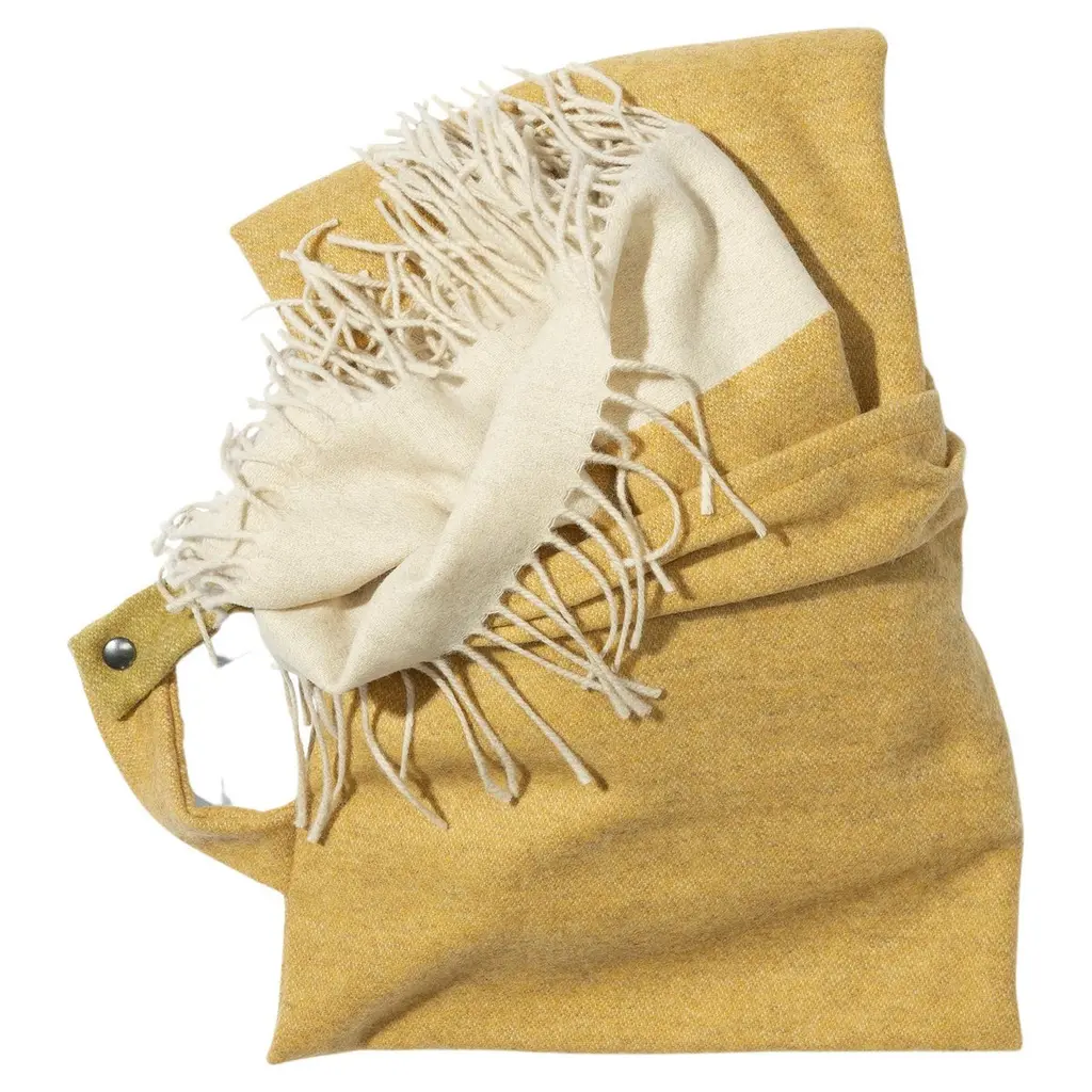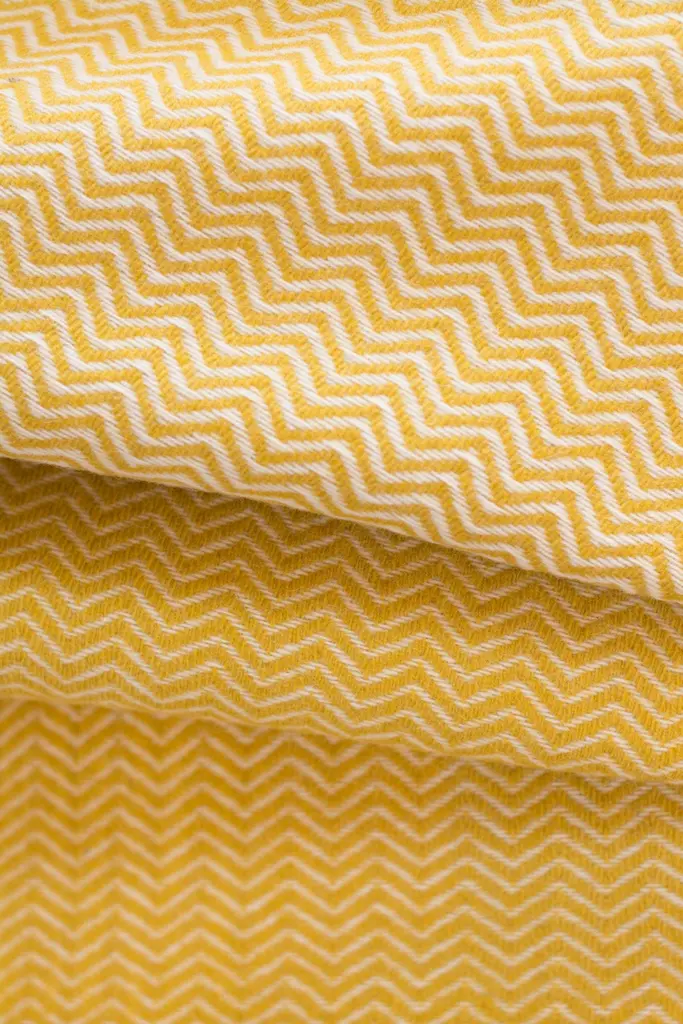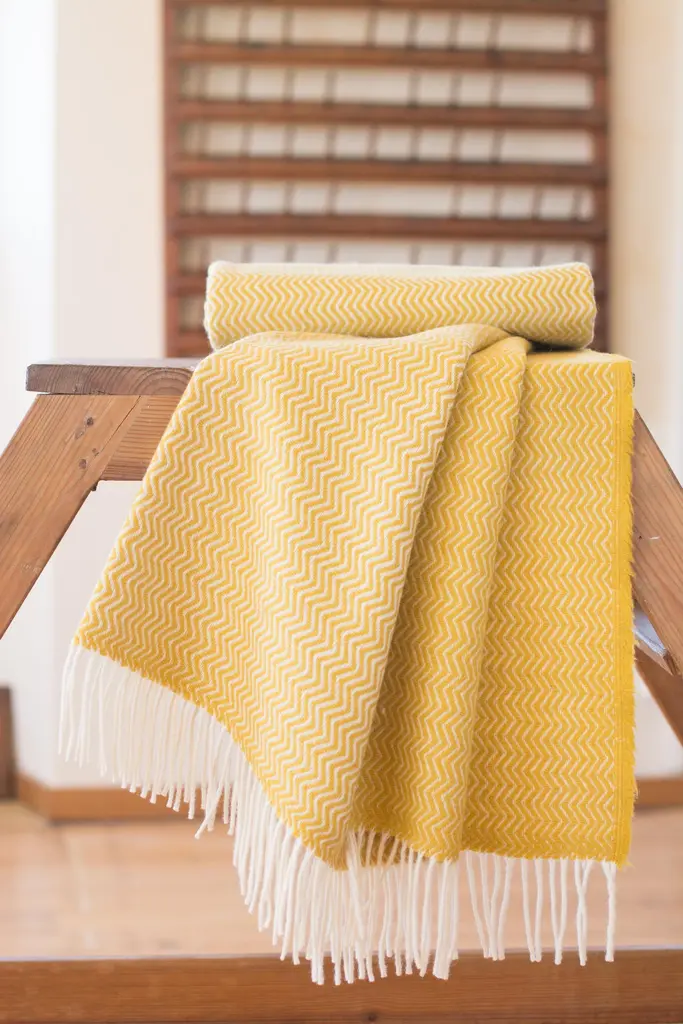 Hand Finished Organic Wool Blanket/throw In Yellow Wave Design Made In Portugal