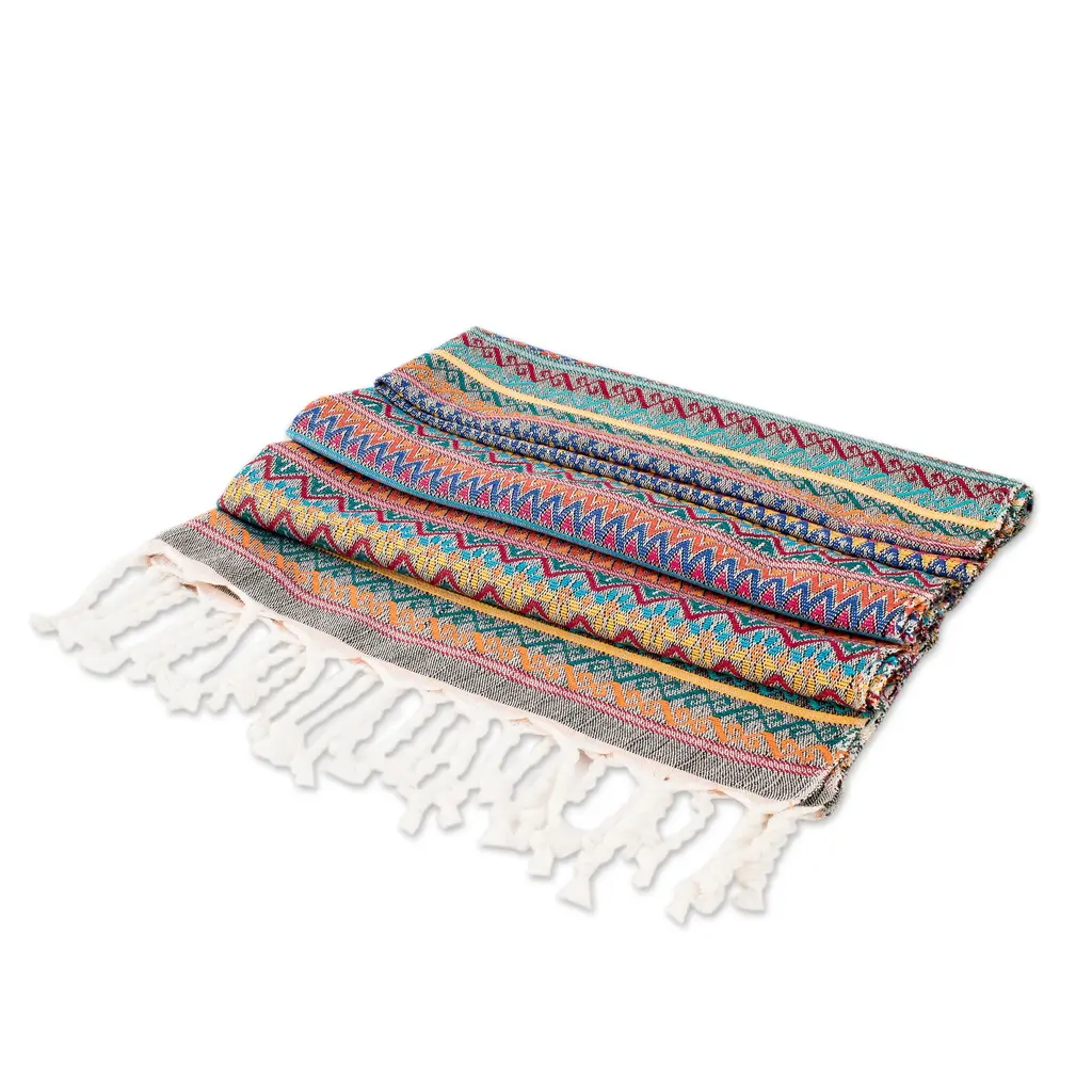 This lovely throw blanket is a fabulous decorative accent that will brighten up any spot at home. Members of the Women United for Artisan Development group in Guatemala hand-weave from 100% cotton the multicolored accessory featuring stunning geometric patterns.