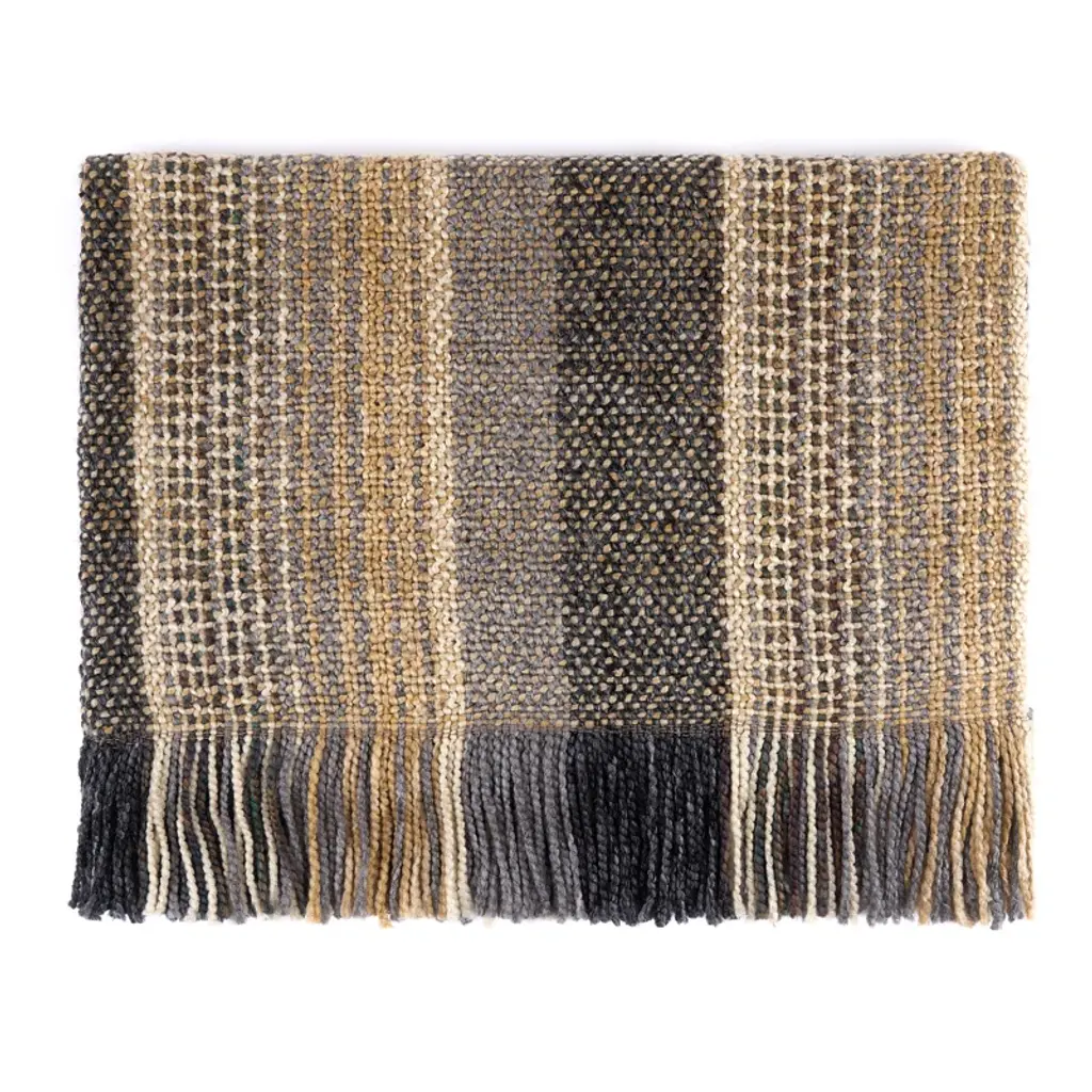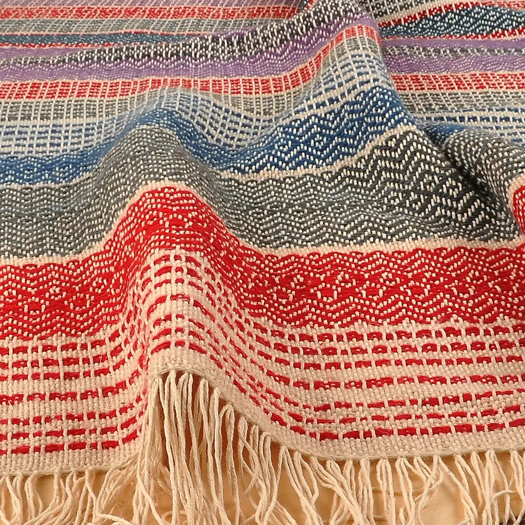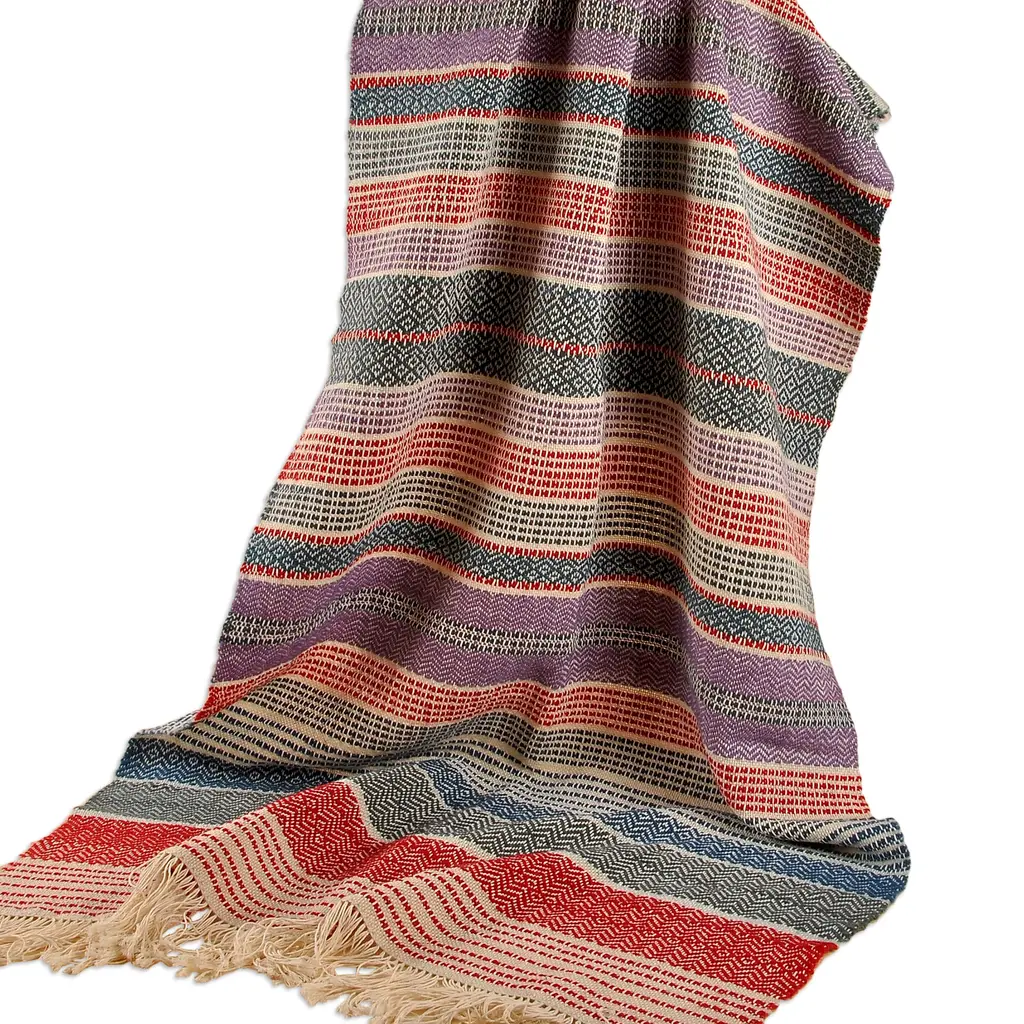 Hand-Woven Striped Wool Throw With Geometric Patterns- Nice And Cozy