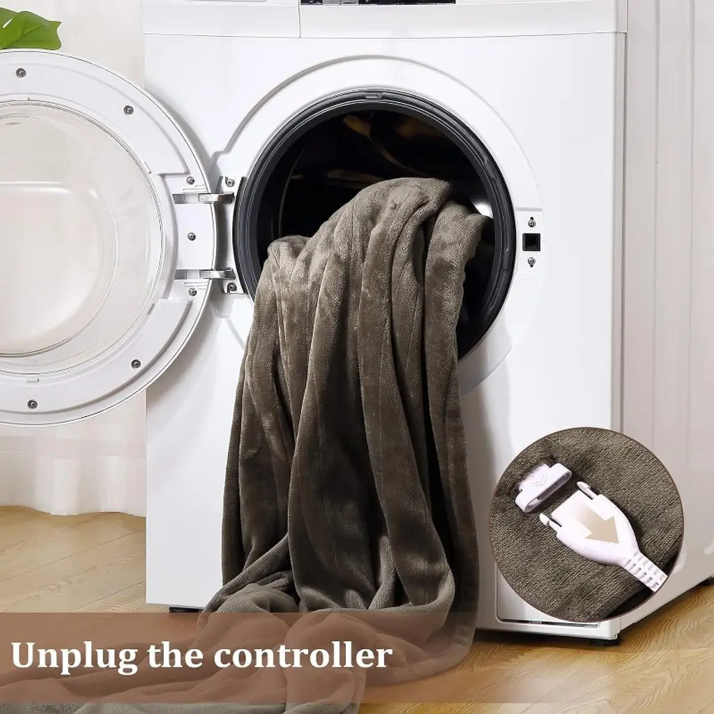 [Fast Heating for Immediate Comfort] Experience rapid warmth as the electric blanket reaches your desired heat level in just minutes. With five adjustable settings up to 115°F—higher than typical blankets—you can customize your comfort and enjoy extra warmth whenever you need it. [Luxuriously Soft and Cozy Flannel] Crafted from double-sided 220 GSM flannel, this heated blanket is soft against the skin and provides lightweight yet effective warmth. The plush fibers retain heat efficiently, ensuring soothing relaxation whether on the couch or in bed. [Advanced Safety With Overheat Protection] Your safety is our priority. This blanket features reliable overheating protection and is ETL certified. If the internal temperature goes above 140°F, it will automatically stop heating and resume only when safe, offering peace of mind with every use. [Five Heat Settings and 10-Hour Auto Off] Adjust between five heat levels from 85°F to 115°F to find your ideal temperature. The 10-hour automatic shut-off ensures the blanket turns off if forgotten, while the long power cord (196 inches) provides convenient reach. [Machine Washable and Easy Care] Simply unplug the controller and toss the blanket in your washing machine for easy cleaning. Use cold water, gentle cycle, and tumble dry low. The blanket is designed for easy care, making it practical for everyday use.