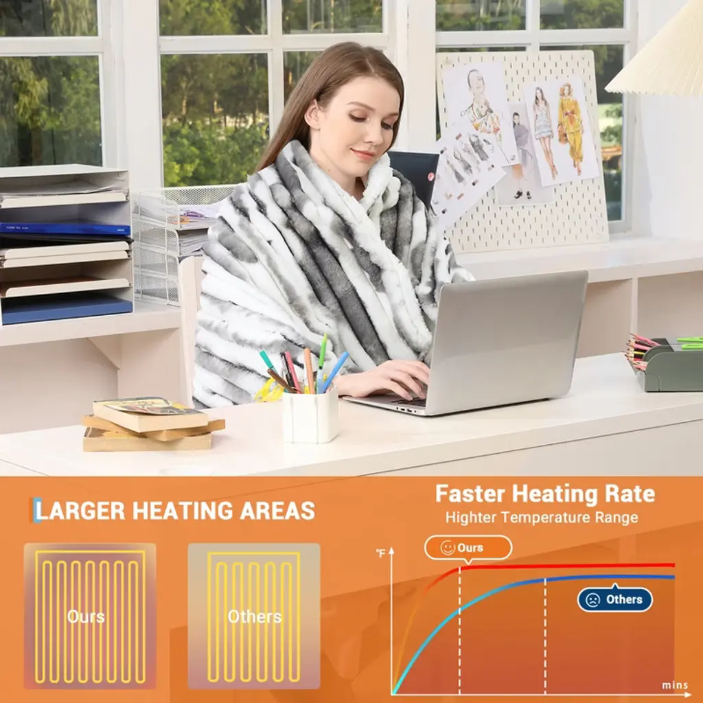 Heated Blanket Throw 50"×60", Ultra Soft Striped Faux Rabbit Fur Electric Blanket Throw 50"×60" With 4 Heat Settings, 10-hour Auto Off, Grey