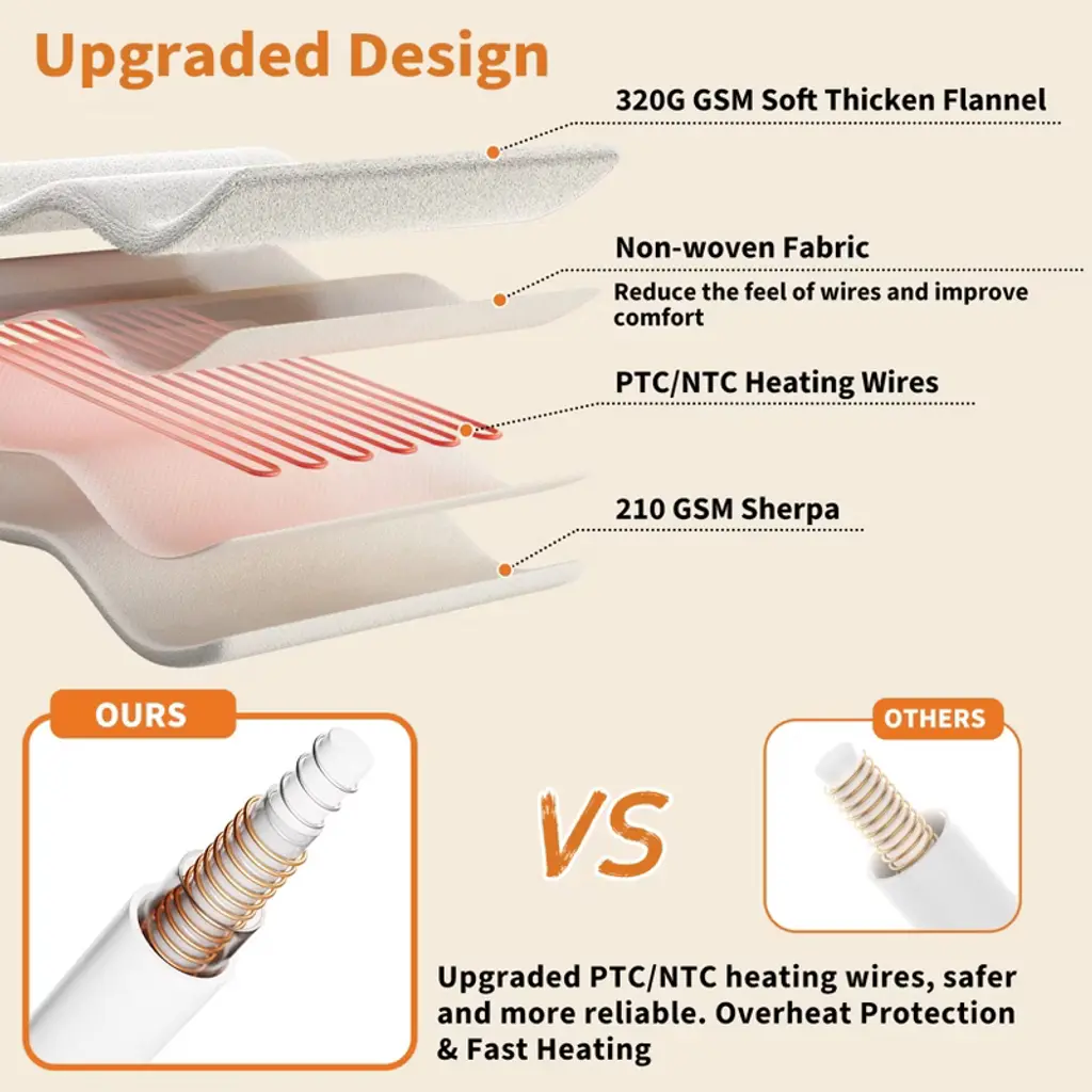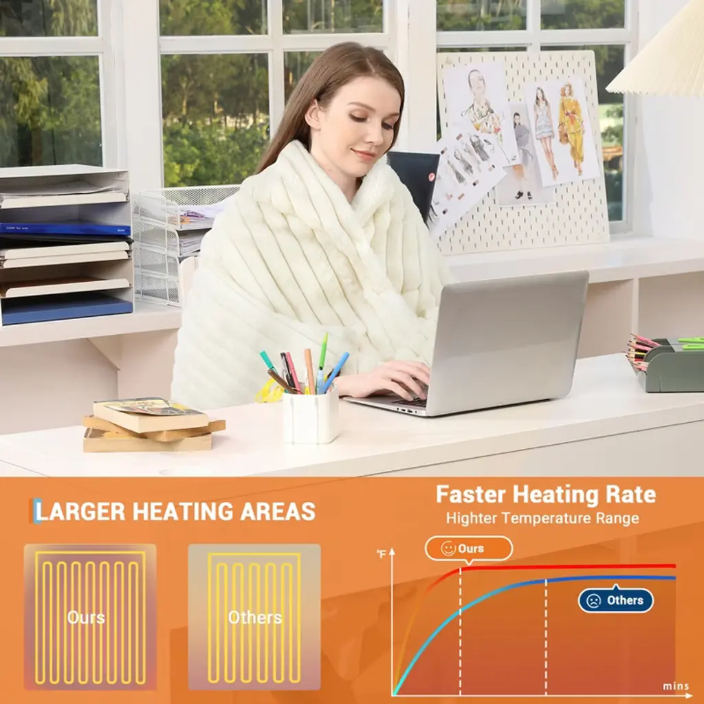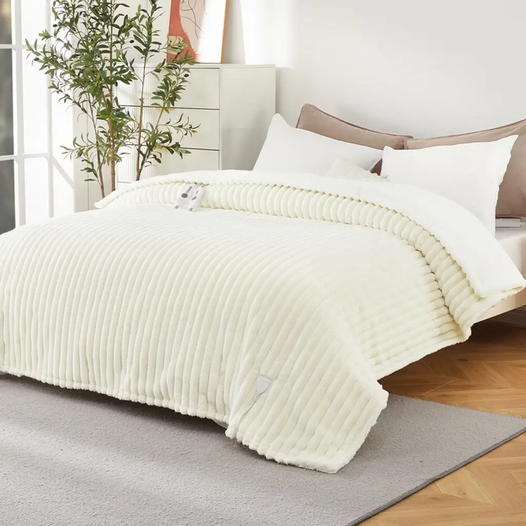 Highlights at a Glance:-Safe, fast, and even heating for dependable warmth all winter-Available in multiple sizes to suit any space or occasion-Adjustable heat settings with automatic shut-off for peace of mind-Luxuriously soft striped faux rabbit fur fabric-Extra-long power cord for flexible and convenient use-Easy care for lasting comfort and warmthSpecification:Material: 100% PolyesterColor: Grey/WhiteSize: Throw Size/Queen Size/King SizeApplication: Bedroom/Living Room/Office/SofaPacking List:1 x Electric Blanket1 x Instruction ManualNotes:1. Proper Storage: Store flat or rolled, never folded tightly, to avoid damaging heating elements.2. Keep Dry: Never use the electric blanket when wet or expose it to water to avoid electric shock.3. Turn Off When Not in Use: Always switch off the blanket before going to bed or leaving the house.