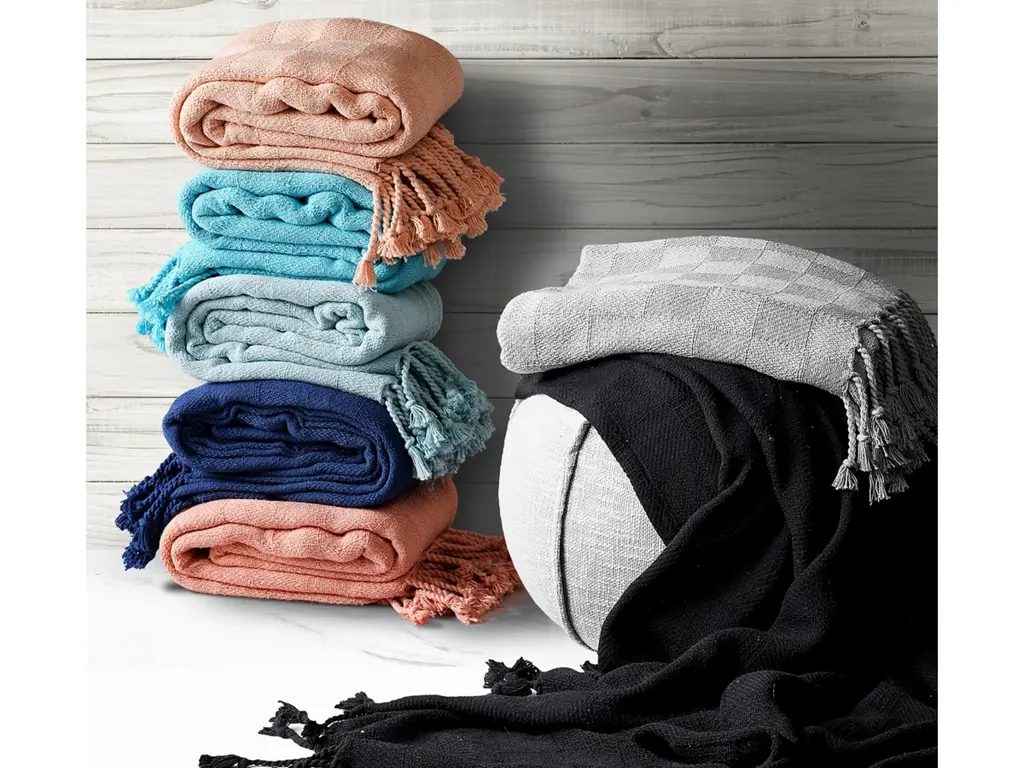 Designed with a balance of leisure and luxury in mind, this everyday accent merges well with multiple decor styles from modern to coastal to farmhouse; this addition is a neutral necessity for your home or office. Standing alone or layered with other accents, this throw brings comfort and style to your space in rich tones finished with twisted bordering fringe for a touch of texture. Bring fashion and function into your home by cozying up or draping over a chair, sofa, couch, or bed.