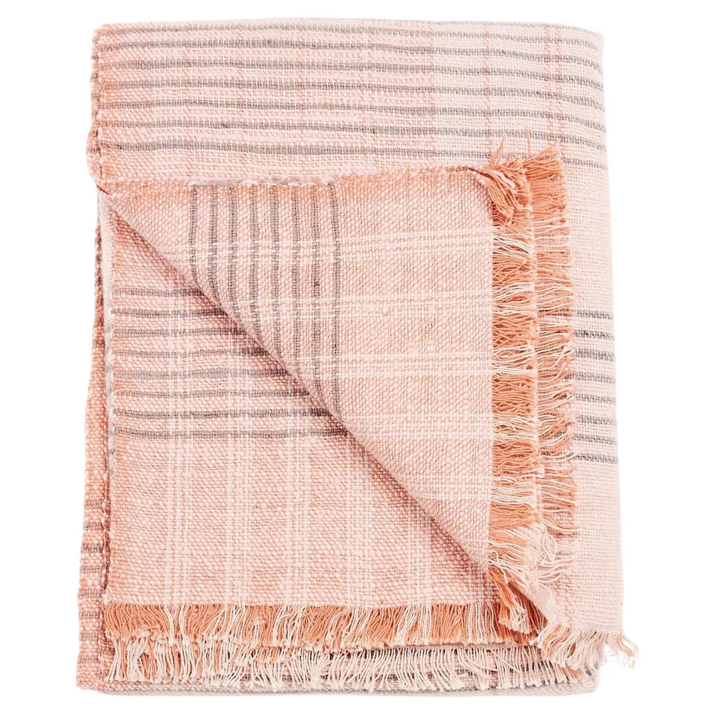 Subtle and delicate, the Herringbone Throw Blanket is the perfect accent for any space. It can easily blend within existing decor, as well as stand out against neutral color palettes or plain furniture, instantly refreshing their look. The throw blanket features long tassel edges, which bring texture to the design.