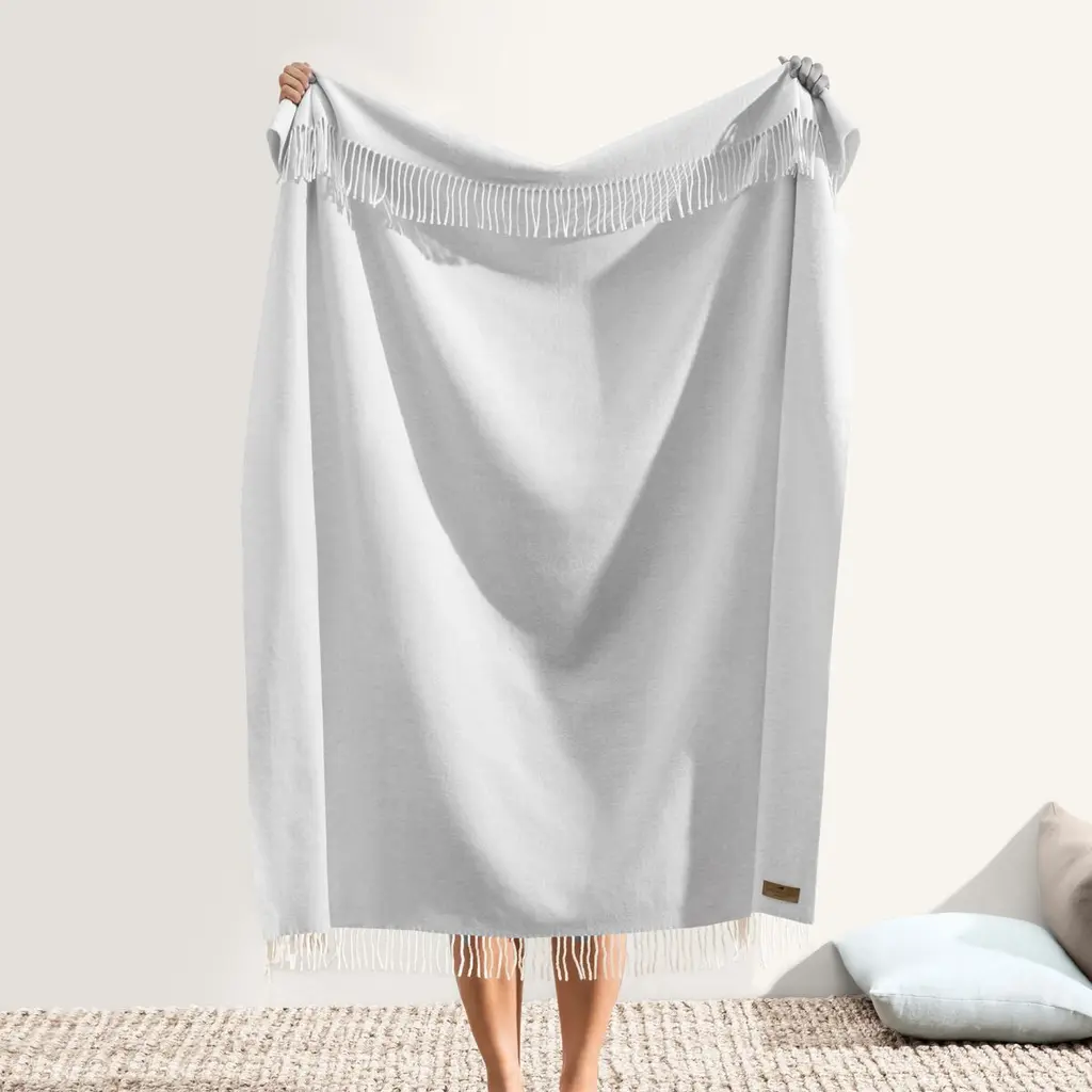 Crafted in Italy with a tonal herringbone weave and luxurious fringe, this cashmere-soft cotton-blend throw lends welcoming texture and visual interest to its surroundings. Lightweight and versatile, this four-season throw is perfect for tossing over the sofa or folding at the foot of the bed.