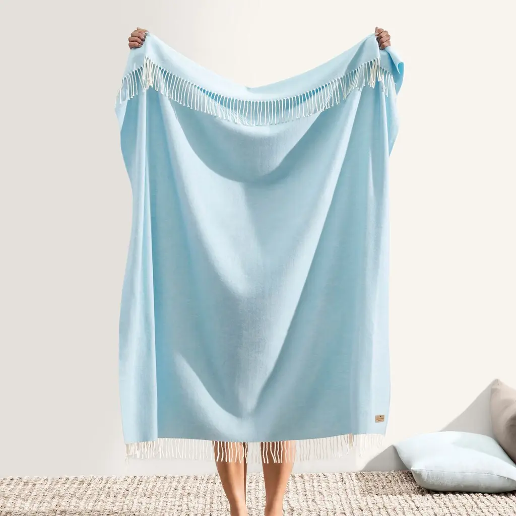 Crafted in Italy with a tonal herringbone weave and luxurious fringe, this cashmere-soft cotton-blend throw lends welcoming texture and visual interest to its surroundings. Lightweight and versatile, this four-season throw is perfect for tossing over the sofa or folding at the foot of the bed.