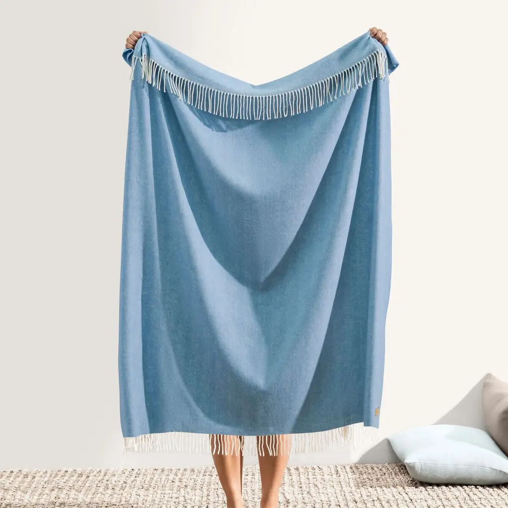 Crafted in Italy with a tonal herringbone weave and luxurious fringe, this cashmere-soft cotton-blend throw lends welcoming texture and visual interest to its surroundings. Lightweight and versatile, this four-season throw is perfect for tossing over the sofa or folding at the foot of the bed.