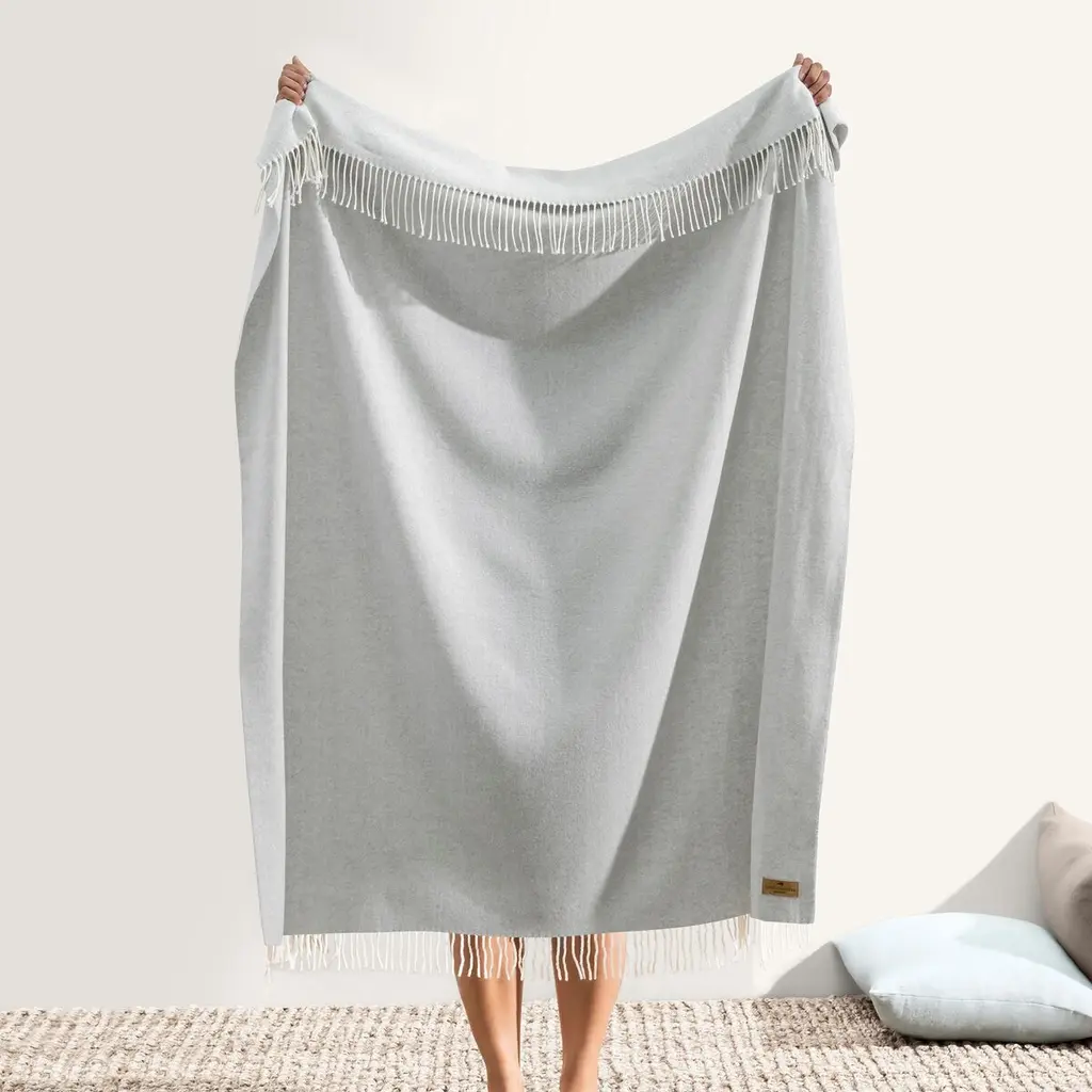 Crafted in Italy with a tonal herringbone weave and luxurious fringe, this cashmere-soft cotton-blend throw lends welcoming texture and visual interest to its surroundings. Lightweight and versatile, this four-season throw is perfect for tossing over the sofa or folding at the foot of the bed.