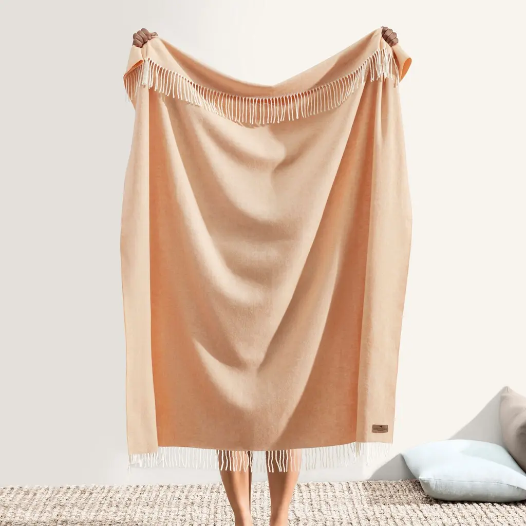 Crafted in Italy with a tonal herringbone weave and luxurious fringe, this cashmere-soft cotton-blend throw lends welcoming texture and visual interest to its surroundings. Lightweight and versatile, this four-season throw is perfect for tossing over the sofa or folding at the foot of the bed.