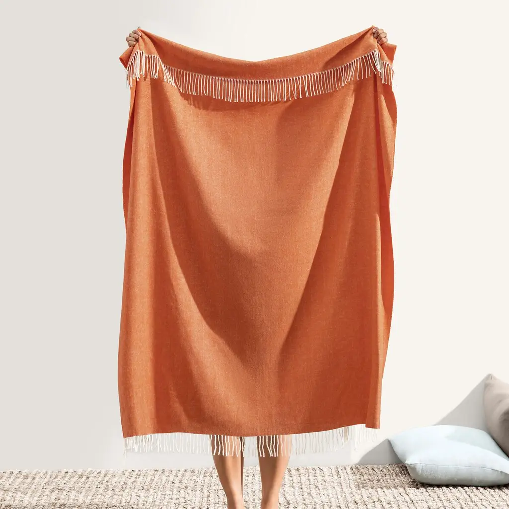 Crafted in Italy with a tonal herringbone weave and luxurious fringe, this cashmere-soft cotton-blend throw lends welcoming texture and visual interest to its surroundings. Lightweight and versatile, this four-season throw is perfect for tossing over the sofa or folding at the foot of the bed.