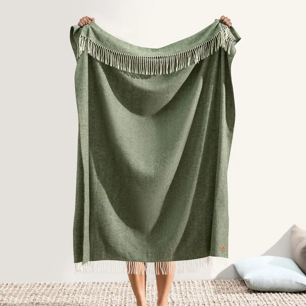 Crafted in Italy with a tonal herringbone weave and luxurious fringe, this cashmere-soft cotton-blend throw lends welcoming texture and visual interest to its surroundings. Lightweight and versatile, this four-season throw is perfect for tossing over the sofa or folding at the foot of the bed.