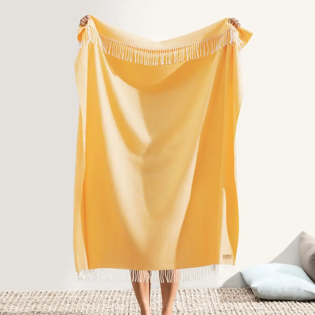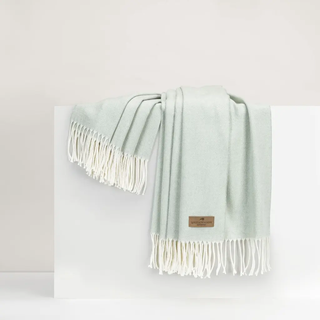 Crafted in Italy with a tonal herringbone weave and luxurious fringe, this cashmere-soft cotton-blend throw lends welcoming texture and visual interest to its surroundings. Lightweight and versatile, this four-season throw is perfect for tossing over the sofa or folding at the foot of the bed.