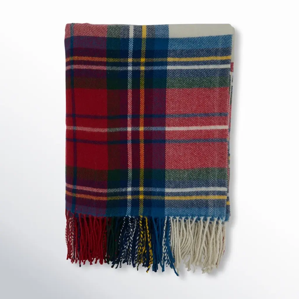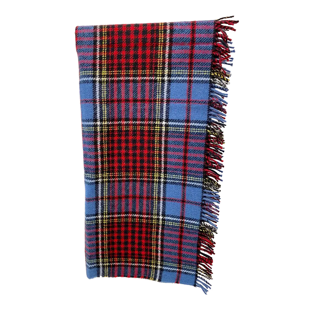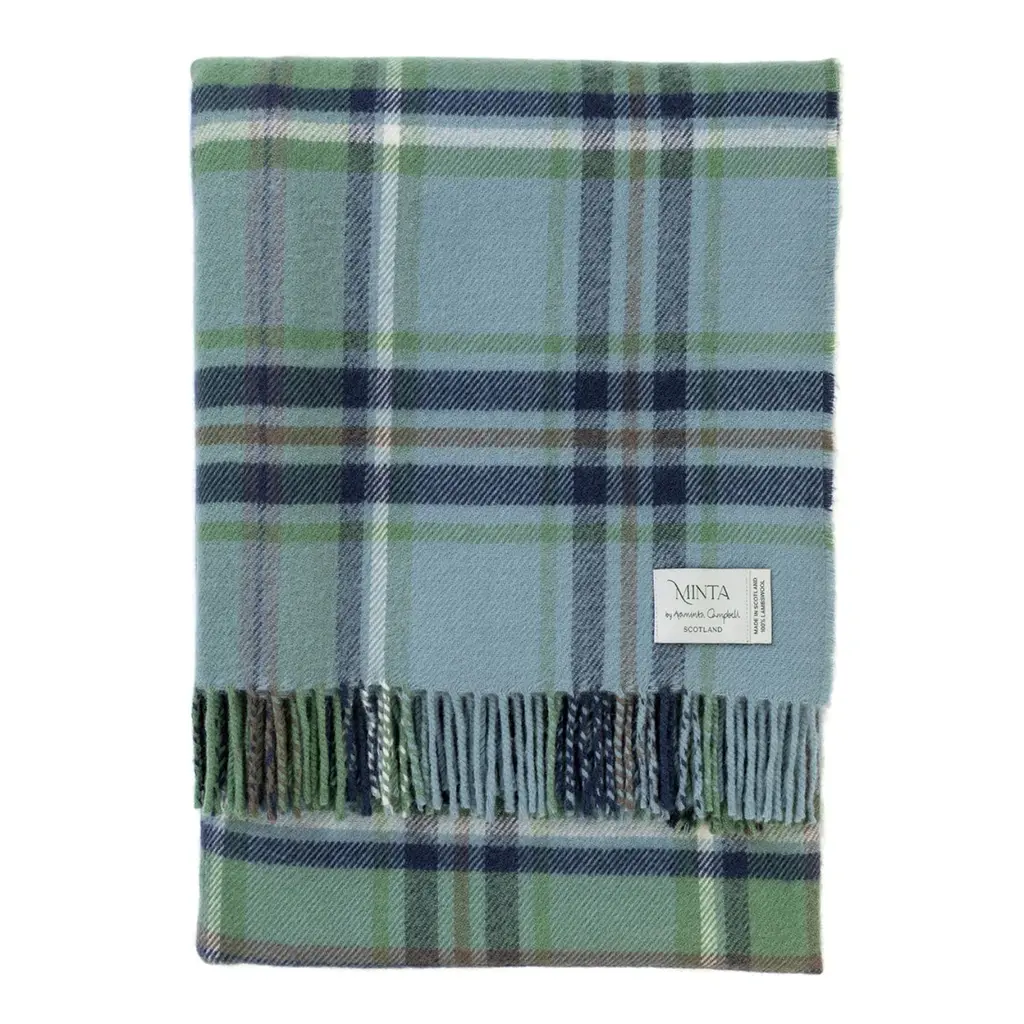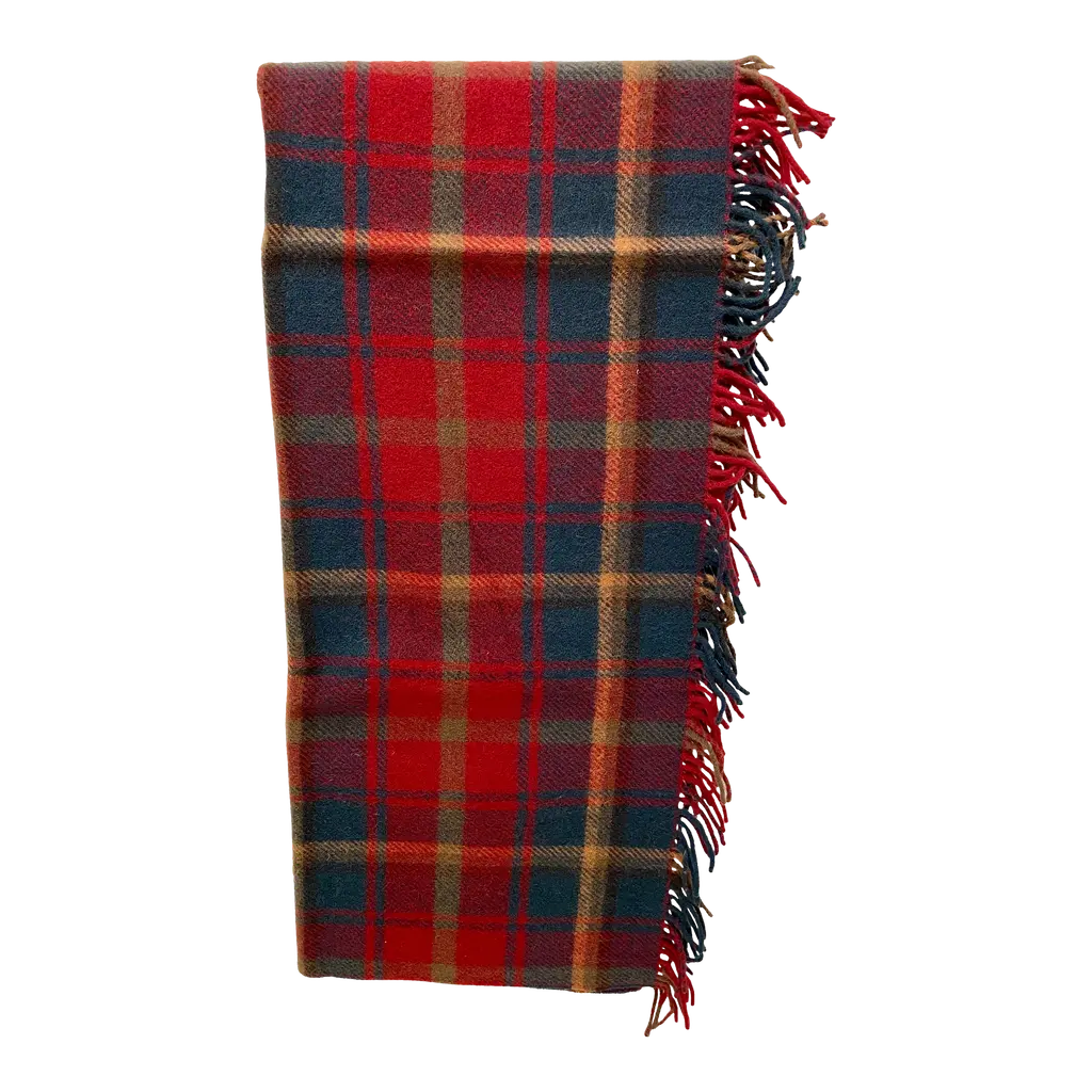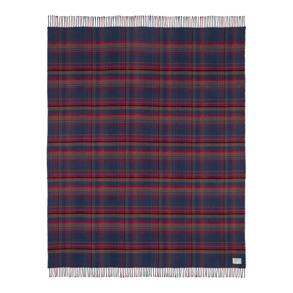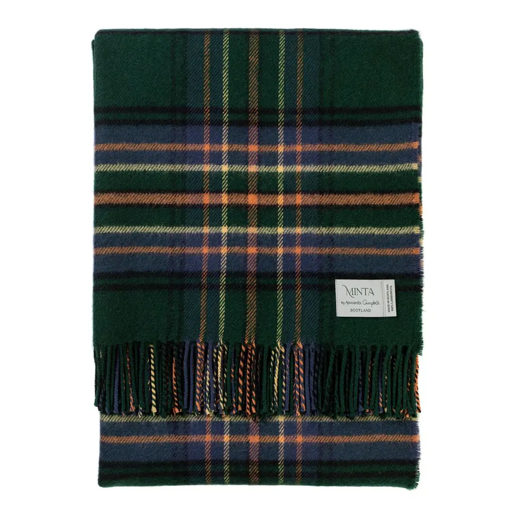 100% Lambswool – luxuriously soft, naturally warm and comfortable, inspired by The Scottish Highlands as the sun sets over the mountains. Designed in Scotland by renowned textile designer, Araminta Campbell. Made in Scotland, woven in a family run 200 year old Scottish mill.Limited Edition, exclusive, collectible piece, made in small batches. Unique Araminta Campbell Palette of dark blue, brown, red, pink and black.Generous Size of 140 × 180cm ideal for draping over beds, sofas or armchairs, adding warmth and timeless Scottish elegance to any space.Comes with a Branded Cloth Bag to keep your throw safe and is perfect for gifting.