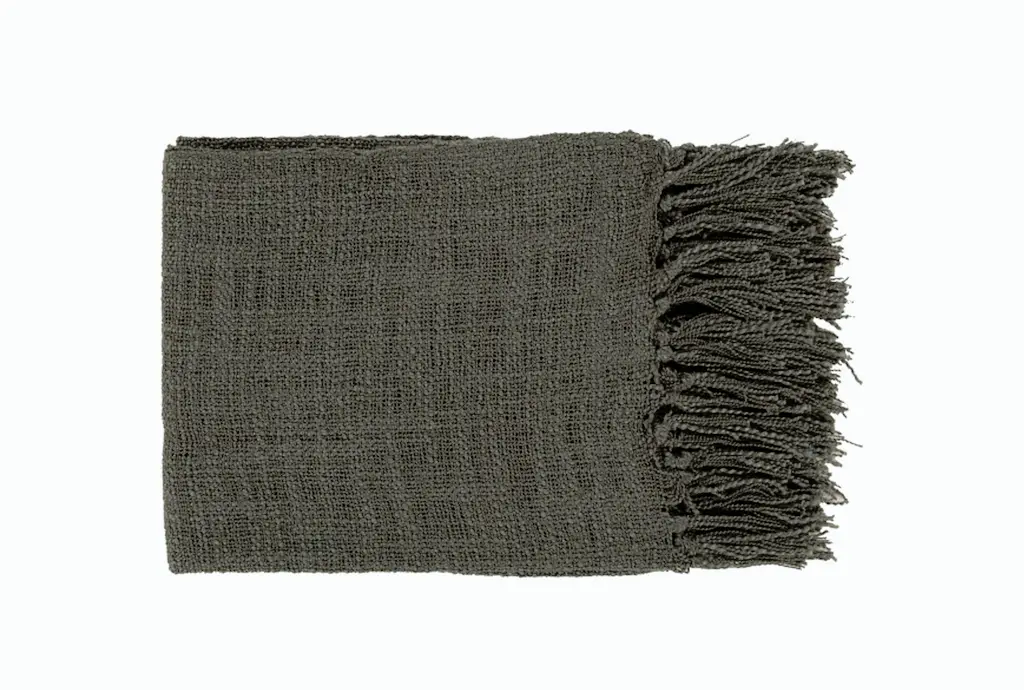 Collection: Hoffman Colors: Charcoal, Silver Gray Construction: Woven Material: Front: 95% Acrylic,Front: 5% Lurex Styles: Solid & Striped,Contemporary Made In: India Fringe Length: 3"