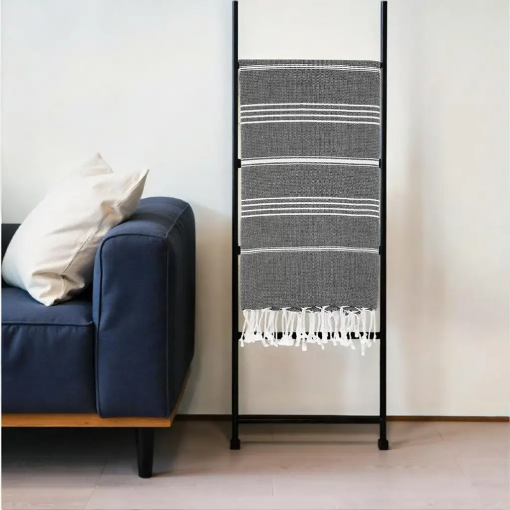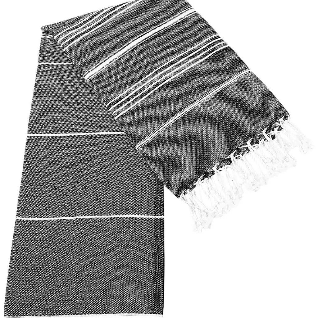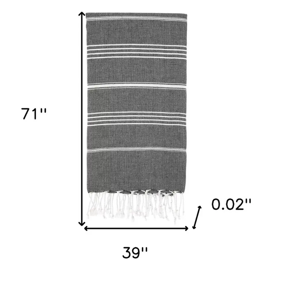 This 39-inch x 71-inch white and black cotton turkish towel throw blanket with tassels is the perfect accent you've been searching for. This versatile blanket can be used as a throw blanket, picnic blanket, beach blanket, even bath towel. This cozy blanket makes the perfect add-on to movie nights and lazy afternoons. Featuring a plain weave in a striped pattern, this throw blanket is a lightweight layer for all seasons. Made from cotton this blanket will make a great addition to any room it's added to. 71-inch h x 39-inch w x 0.02-inch d